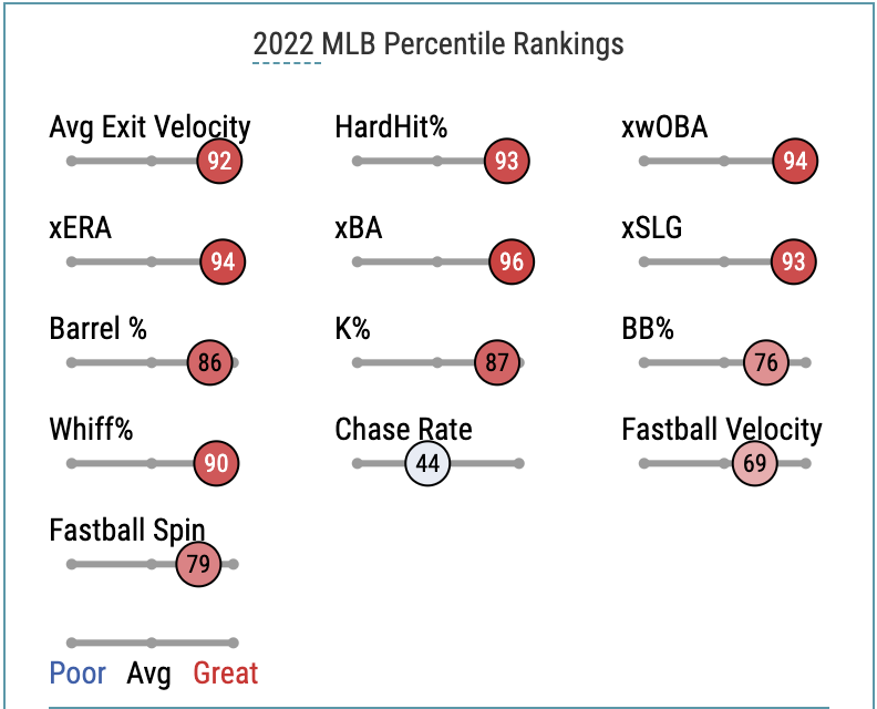 Munoz is having a breakout year in 2022, ranking 5th among qualified relievers in K% and 3rd in K-BB%. He has been particularly exceptional over the past month. In 14 2/3 innings since June 13th, Munoz hasn't allowed an earned run. During this stretch he has a 29:3 K:BB with a -0.23 FIP. Alrighty then.
