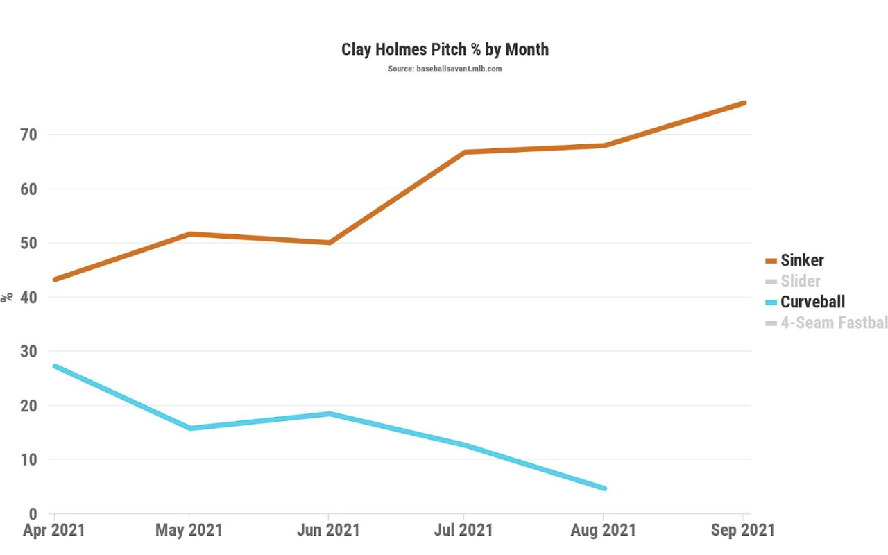 In 2022 he's throwing the pitch even more while locating it better than he ever has. The sample size is small but he's become a top-5 closer in baseball. Among AL relievers with at least 25 innings, Holmes leads everyone in ERA (0.31), FIP (1.75), and GB% (84.3%).