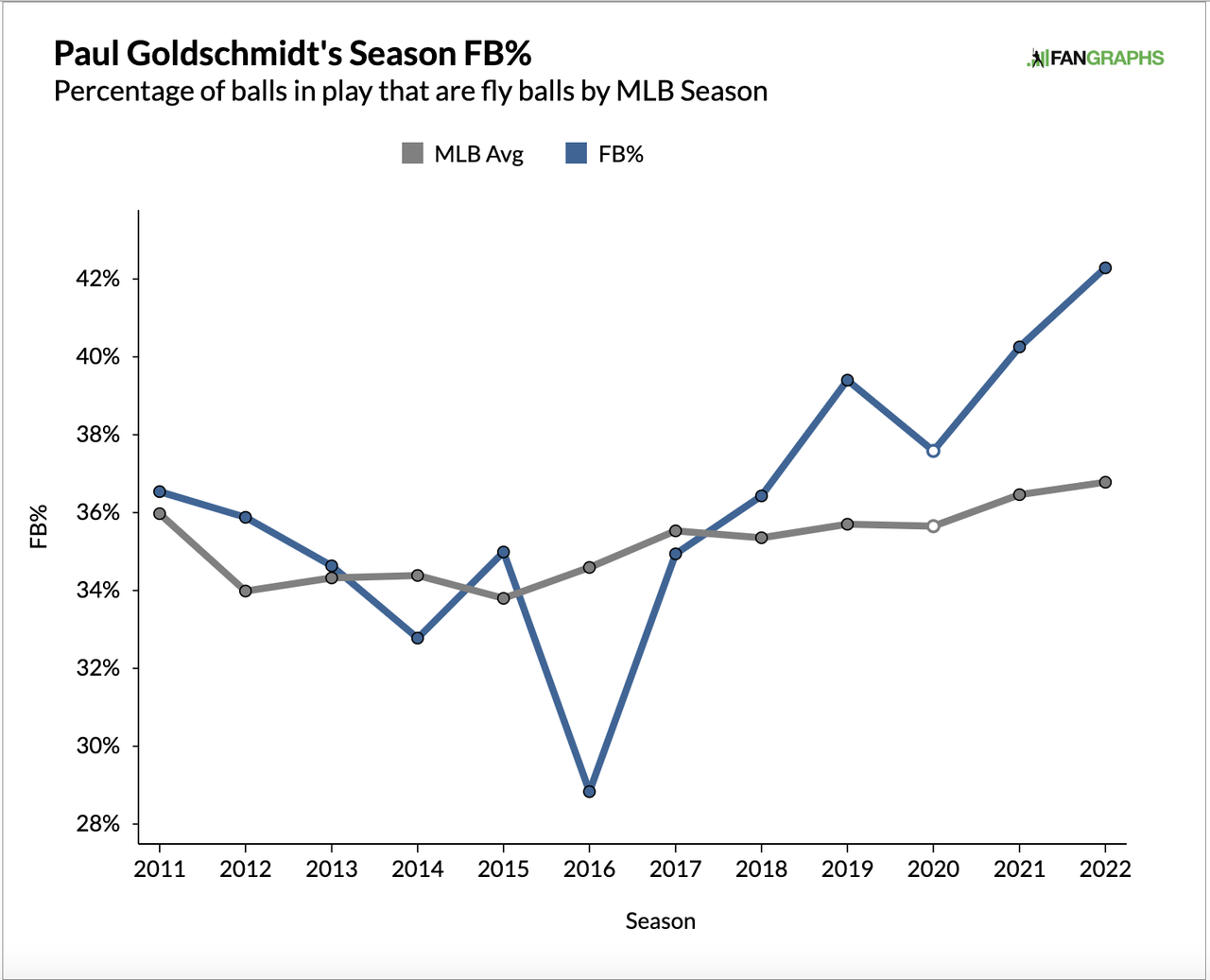 The 34-year-old Goldschmidt gets the starting spot as he's reached another level offensively so far this season. His 186 wRC+ is currently the best mark of his career. He has achieved this by leaning even more heavily into the fly ball approach he began in '21. Specifically, he's swinging (and pulling) at inside pitches while obliterating sliders as the league keeps throwing more and more of them. Similar to how we described Altuve's transformation, Goldy is simply doing what the great ones eventually do.