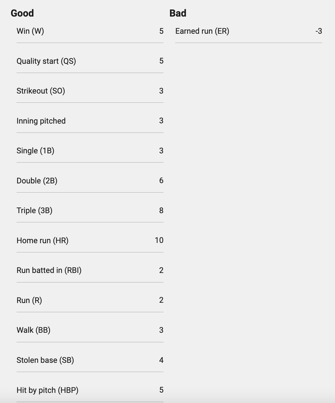 Here is the scoring system for Underdog MLB Best Ball tournaments. Note that only pitchers can lose points!