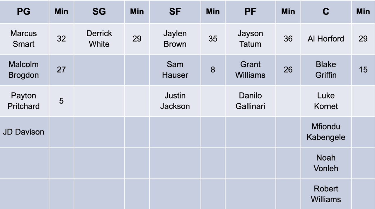 Added: Malcolm Brogdon, Danilo Gallinari, Blake Griffin, Justin Jackson, Mfiondu Kabengele (Two-Way), JD Davison (Two-Way)