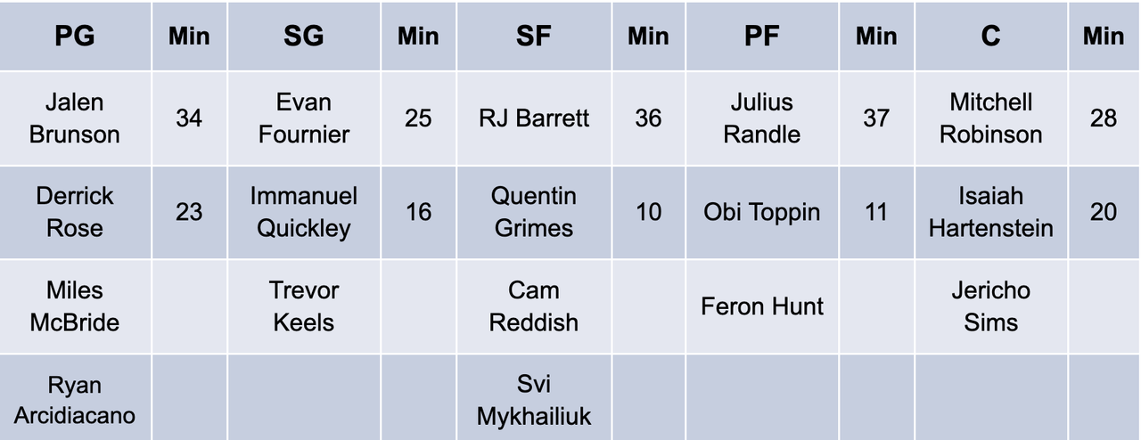 What made this past season disheartening was not necessarily the wins and losses. It felt like personalities didn’t fit. Randle’s relationship with the home crowd turned ugly, and this happened while his play in nearly every regard declined. If Randle’s lone All-Star appearance was an outlier and Thibs’ message is increasingly lost on this group, then this should make for a very average team. Additionally, Evan Fournier regressed last season, and Obi Toppin, Immanuel Quickley, Quentin Grimes, and Cam Reddish will all be dissatisfied with their roles. It’s easy to see how the bad vibes continue.