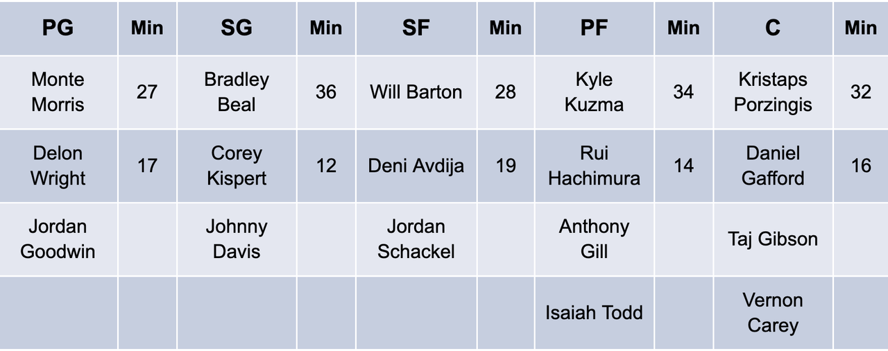 Lost: Thomas Bryant, Kentavious Caldwell-Pope, Raul Neto, Tomas Satoransky, Ish Smith, Cassius Winston