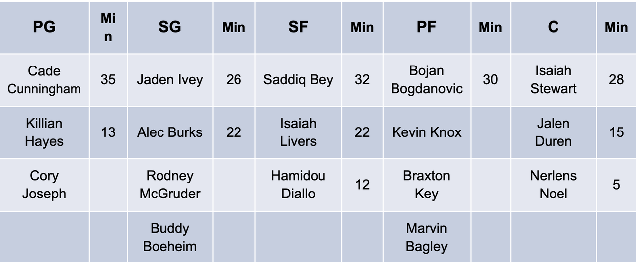 Lost: Jerami Grant, Saben Lee, Kelly Olynyk, Frank Jackson, Luka Garza, Jamorko Pickett, Carsen Edwards