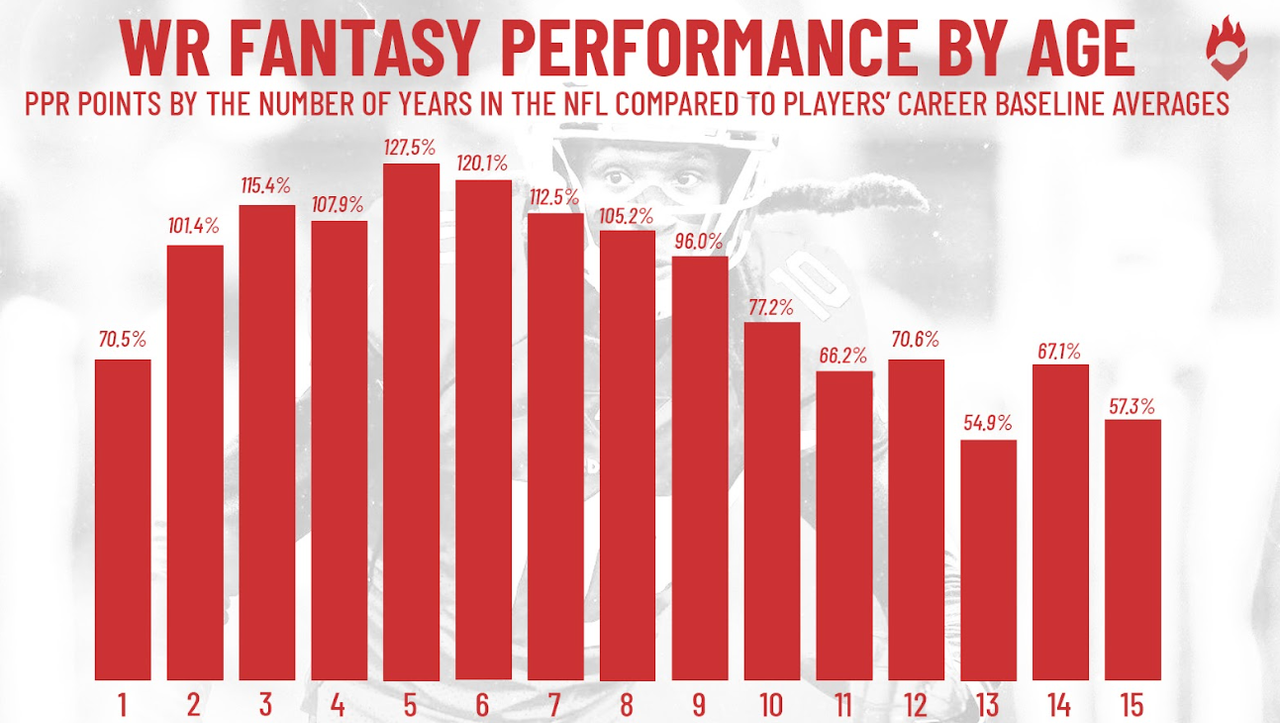DK Metcalf has been the WR16 and WR17 in fantasy points over replacement per game, and last year he was unlucky. Metcalf was the WR13 in expected points on the 3rd most expected TDs (8.3), yet he only scored 6 of them despite being, you know, 6'3/229 DK Metcalf. That should positively regress going into his age-26 season. The increased target competition is a minor threat, but there's extremely little overlap between Metcalf and first-round rookie Jaxon Smith-Njigba, who eats out of the slot. JSN is a baller (a la Keenan Allen) and is great fit with Geno, who throws dimes over the middle. Here's our pre-draft prospect video on him. JSN will be primarily competing with Tyler Lockett for snaps and targets, as they both play some slot and live over the middle. The 31-year-old remained extremely efficient last year, averaging 8.8 yards per target on an outrageous 9 TDs on just 4.1 expected TDs. That's the 2nd-most TDs over expected in the entire NFL. Lockett was the WR19 per game on just WR36 fantasy usage, so if his play declines in year nine, he doesn't have the volume to hold onto fantasy WR2/3 status, especially with JSN in the mix. It wouldn't be a surprise if Lockett and JSN traded off decent weeks as upside flex plays, while Metcalf finally solidifies himself as the alpha of the offense.