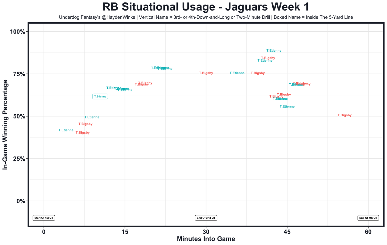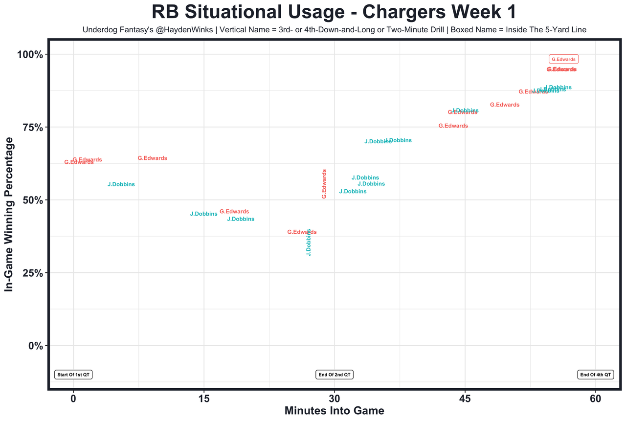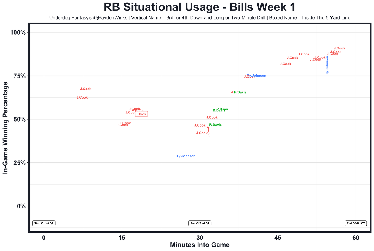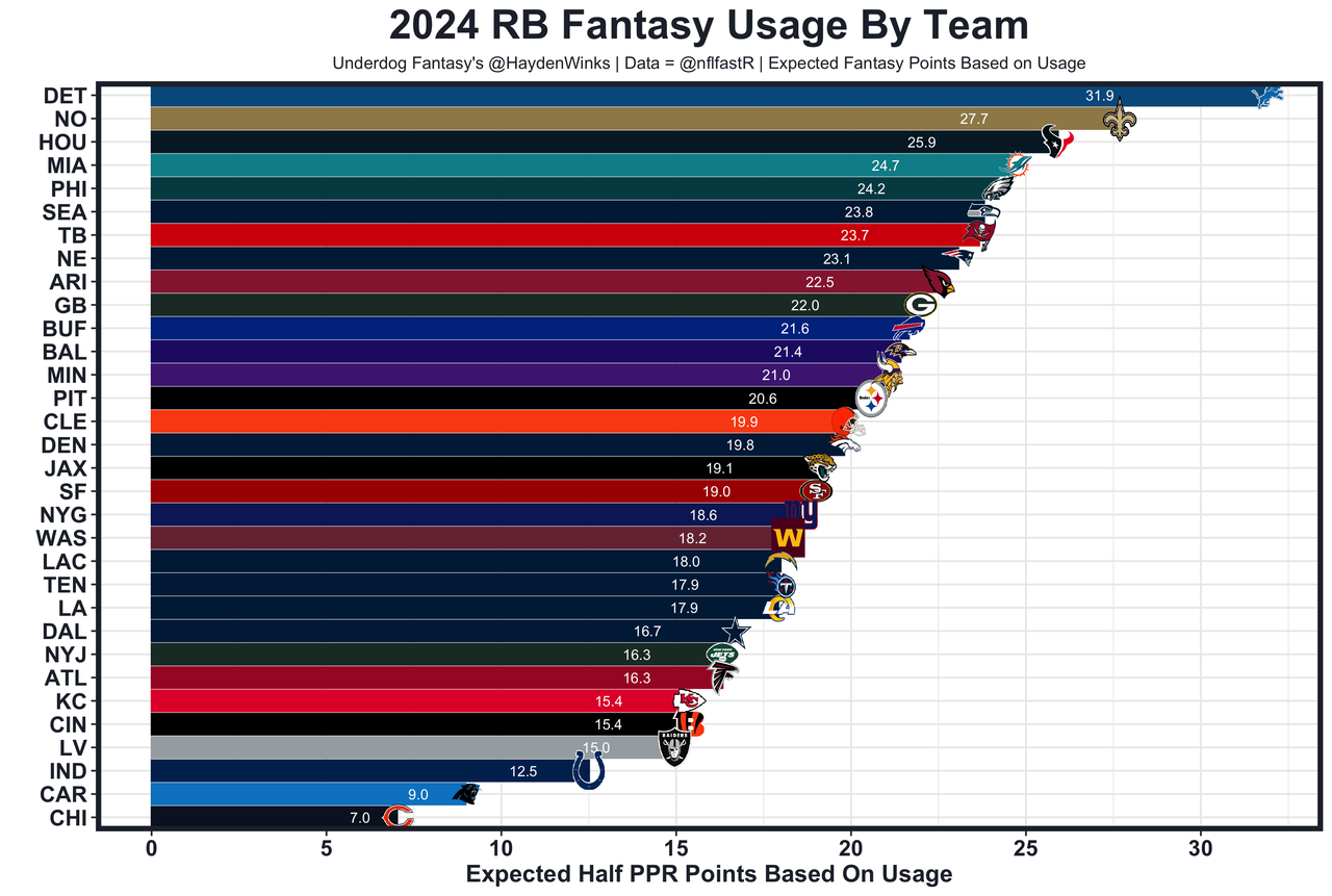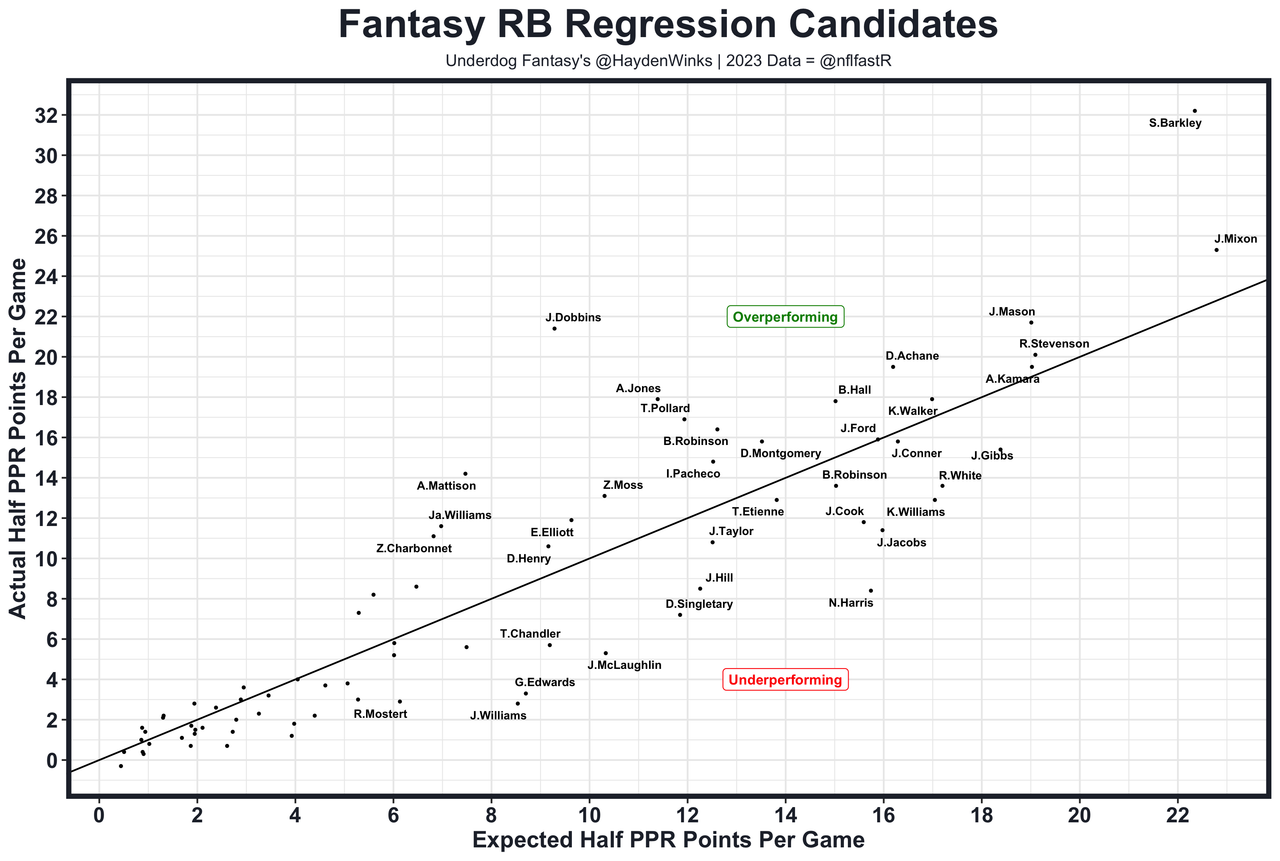 Posted every Tuesday, The Fantasy Usage Model combines my expected fantasy points model with his film notes to recap the previous week's game. An explanation of this is here, but it basically turns targets, carries, air yards, goal line touches, and other variables into expected fantasy points. We have the sickest fantasy show ever on Tuesday nights going over this column. If you have time for 1 hour of fantasy content, make it this one.