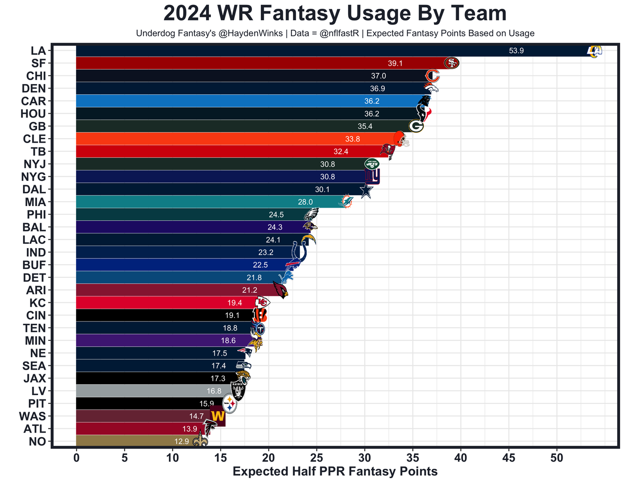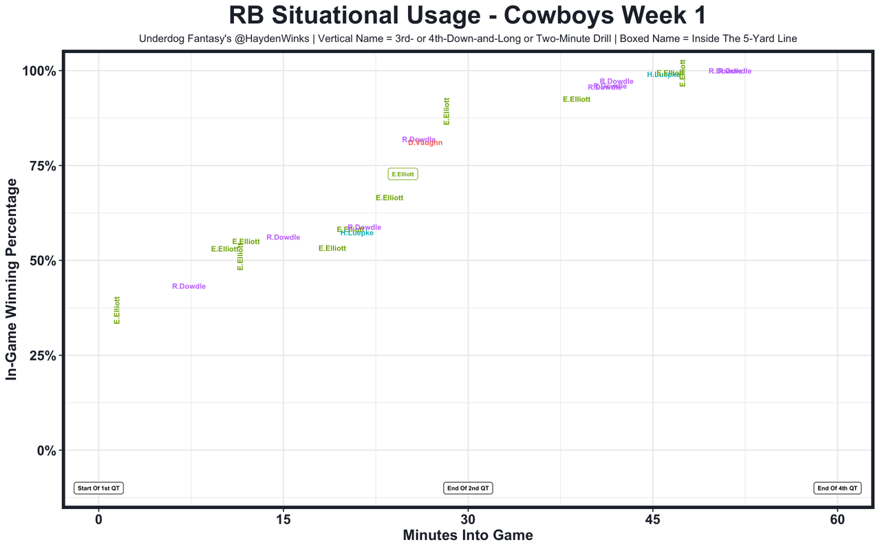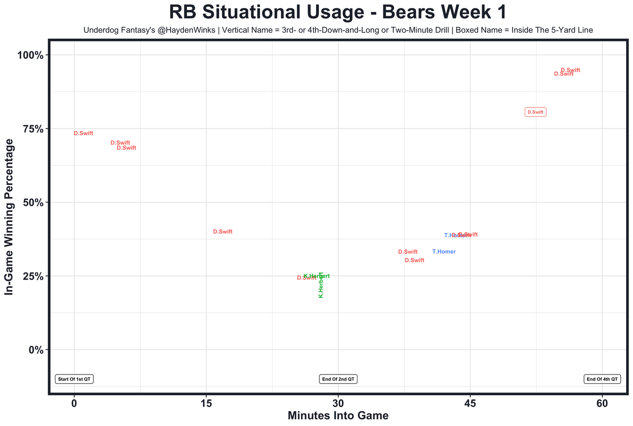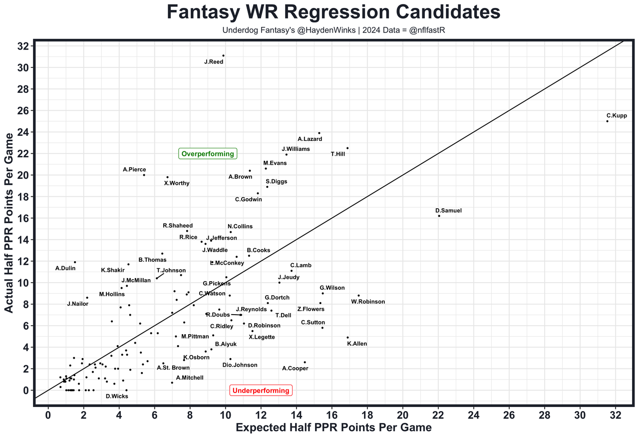 Posted every Tuesday, The Fantasy Usage Model combines my expected fantasy points model with his film notes to recap the previous week's game. An explanation of this is here, but it basically turns targets, carries, air yards, goal line touches, and other variables into expected fantasy points. We have the sickest fantasy show ever on Tuesday nights going over this column. If you have time for 1 hour of fantasy content, make it this one.