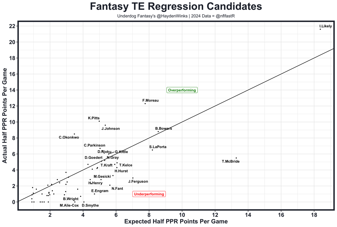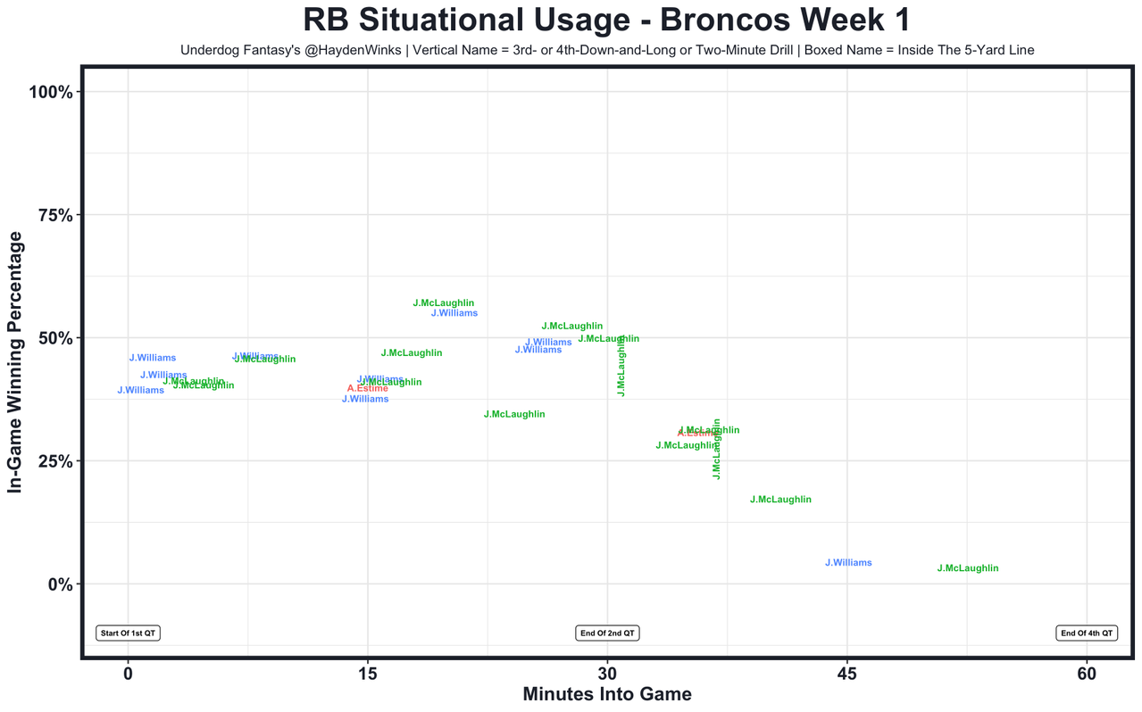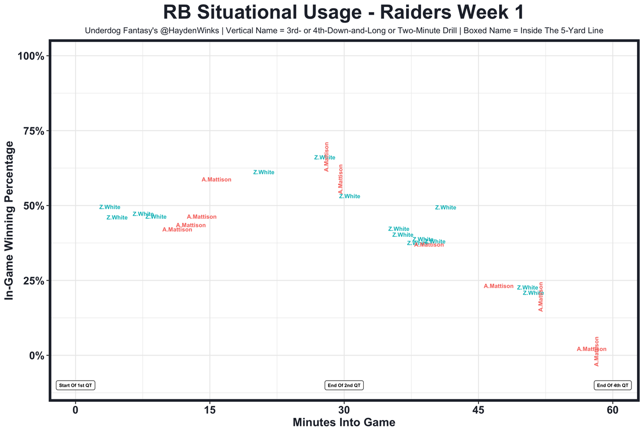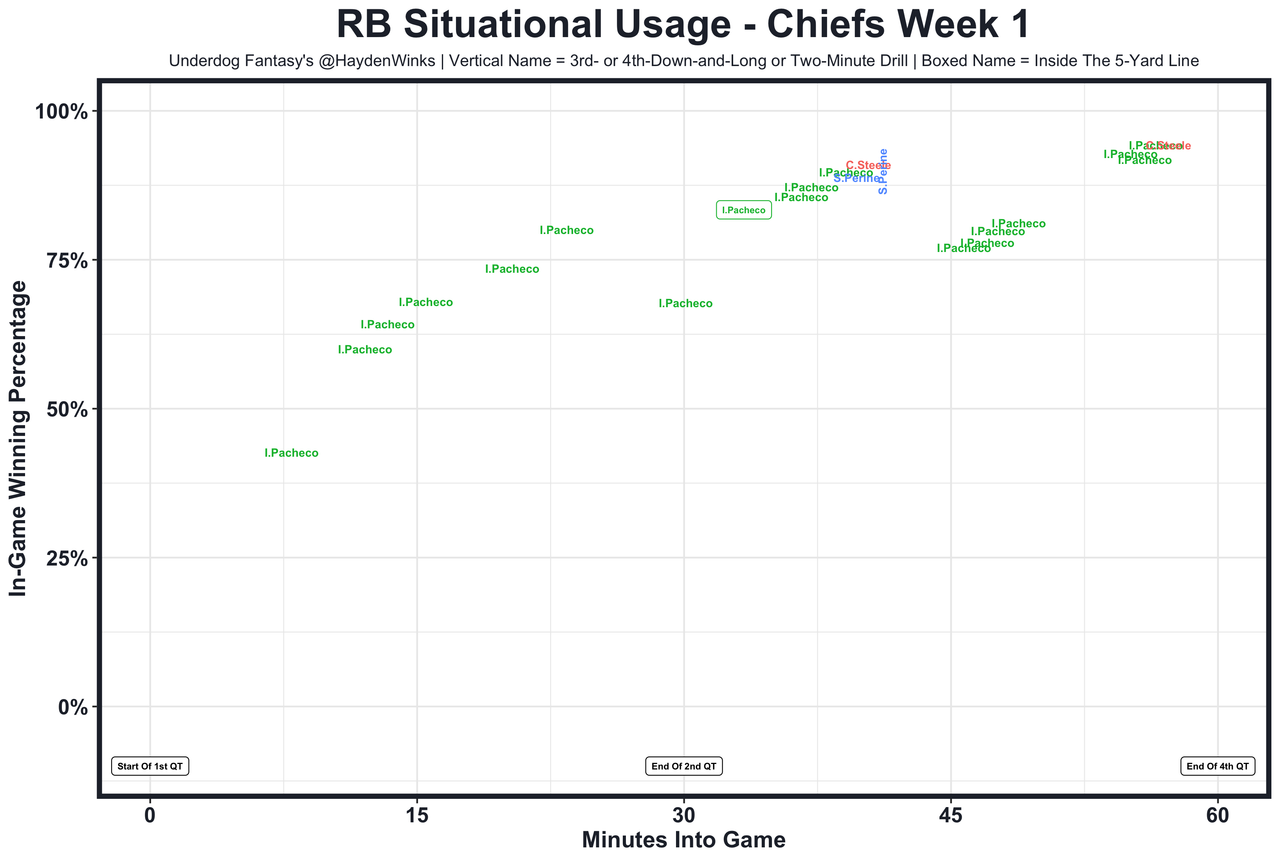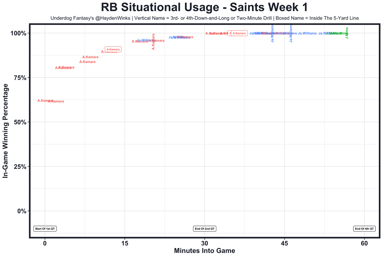 Posted every Tuesday, The Fantasy Usage Model combines my expected fantasy points model with his film notes to recap the previous week's game. An explanation of this is here, but it basically turns targets, carries, air yards, goal line touches, and other variables into expected fantasy points. We have the sickest fantasy show ever on Tuesday nights going over this column. If you have time for 1 hour of fantasy content, make it this one.
