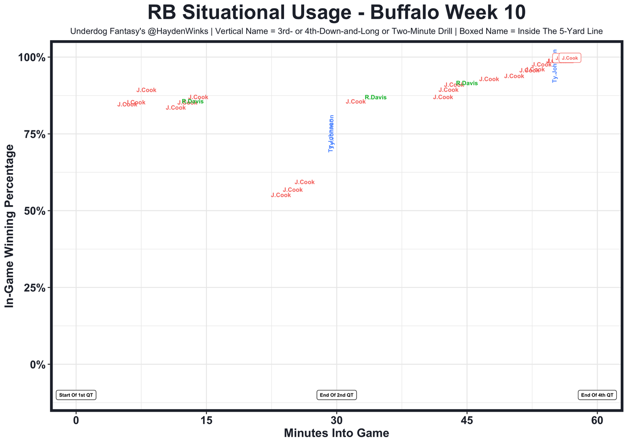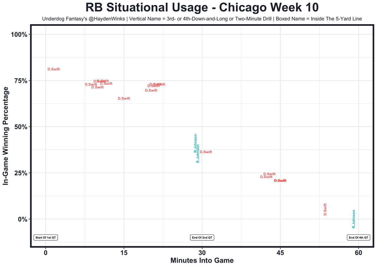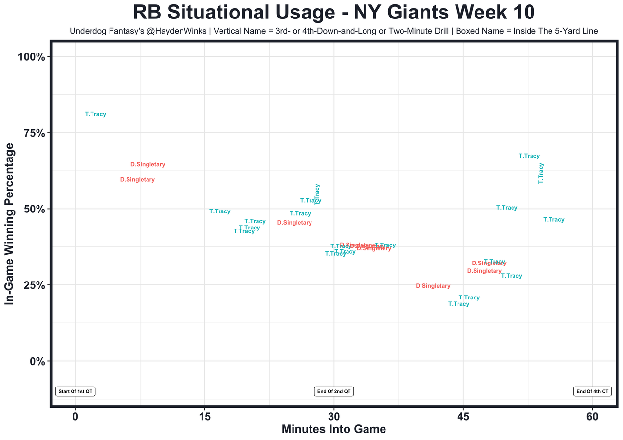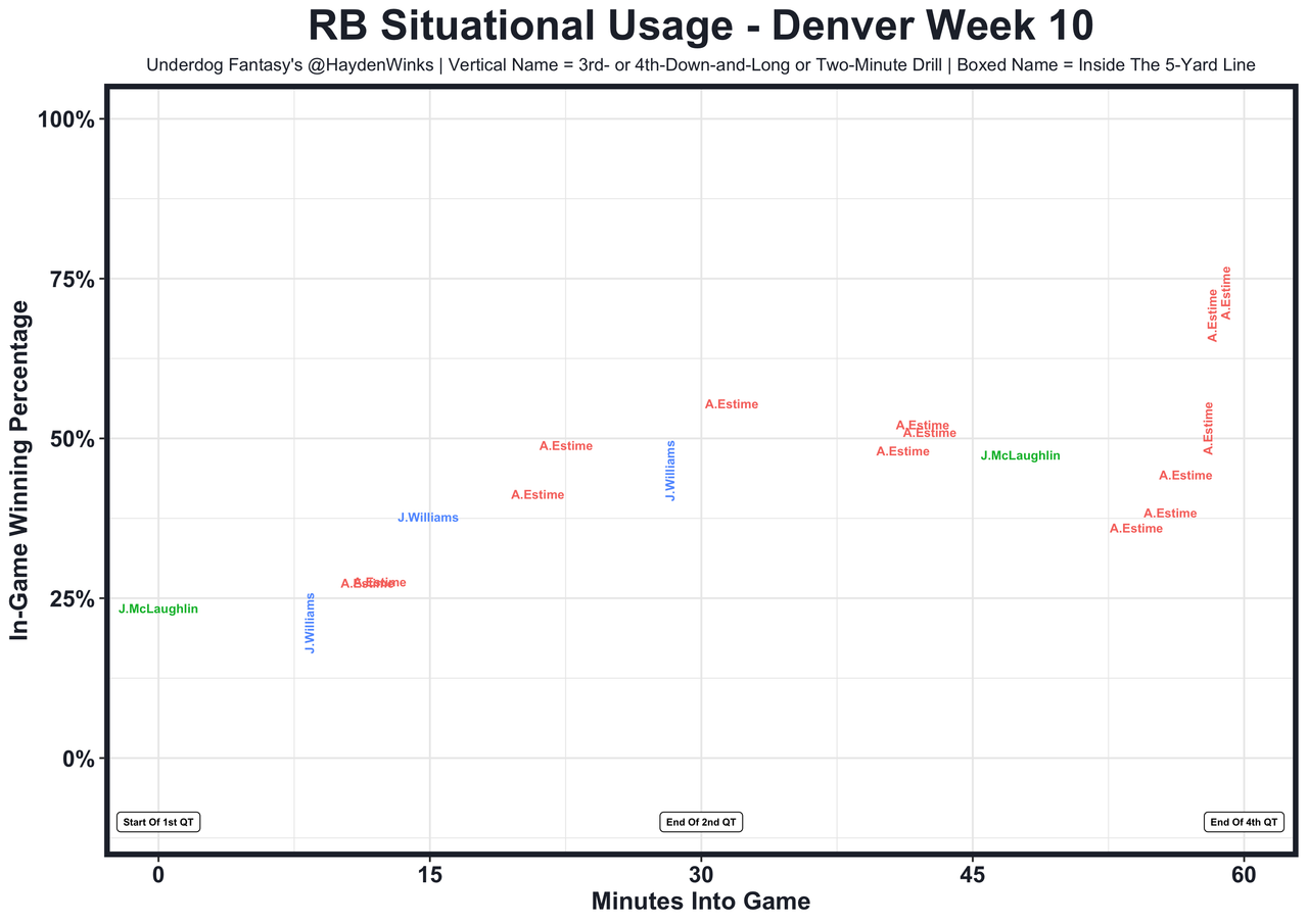 Posted every Tuesday, The Fantasy Usage Model combines my expected fantasy points model with his film notes to recap the previous week's game. An explanation of this is here, but it basically turns targets, carries, air yards, goal line touches, and other variables into expected fantasy points. We have the sickest fantasy show ever on Tuesday nights going over this column. If you have time for 1 hour of fantasy content, make it this one.