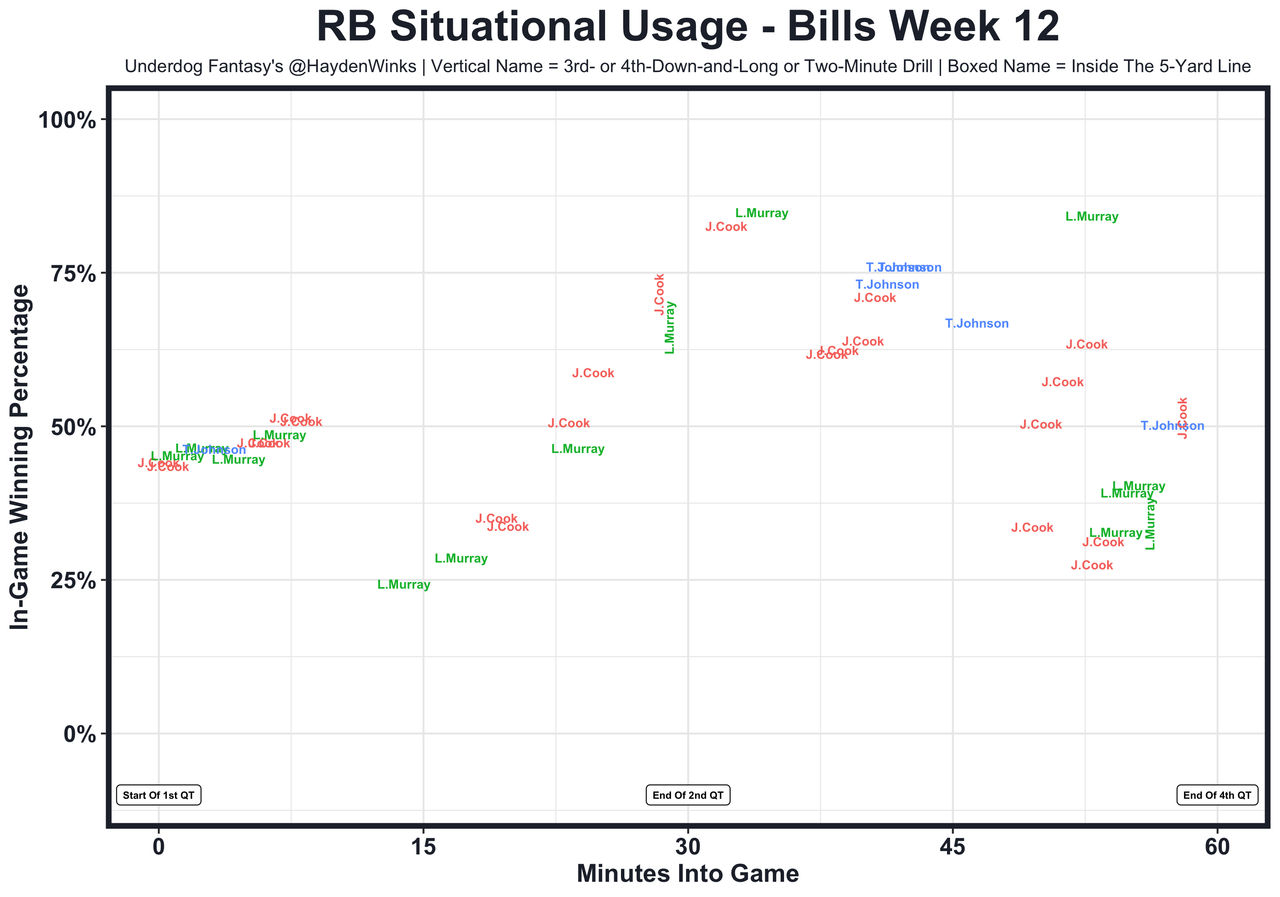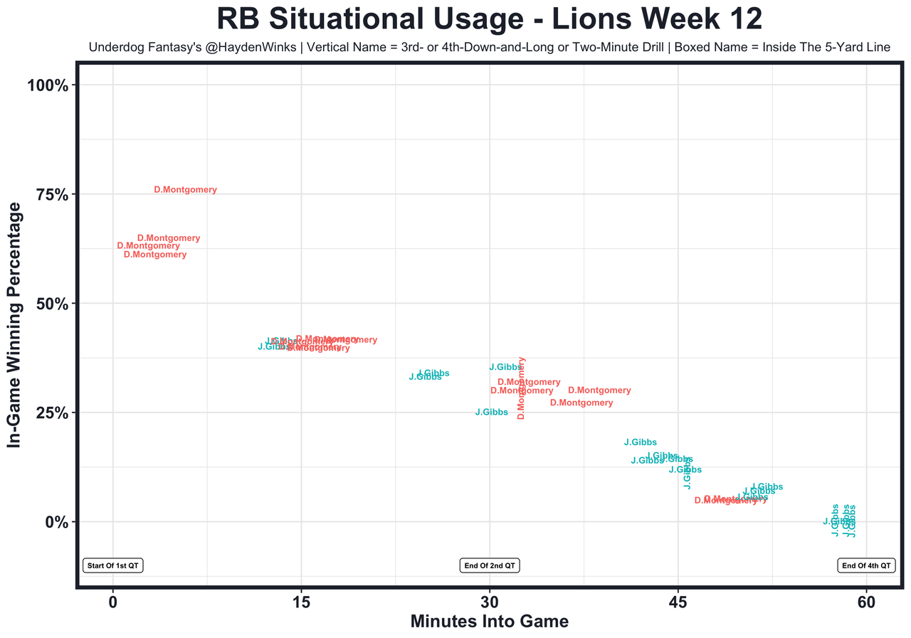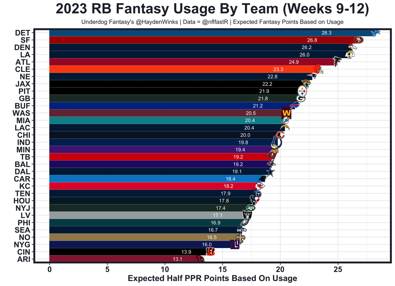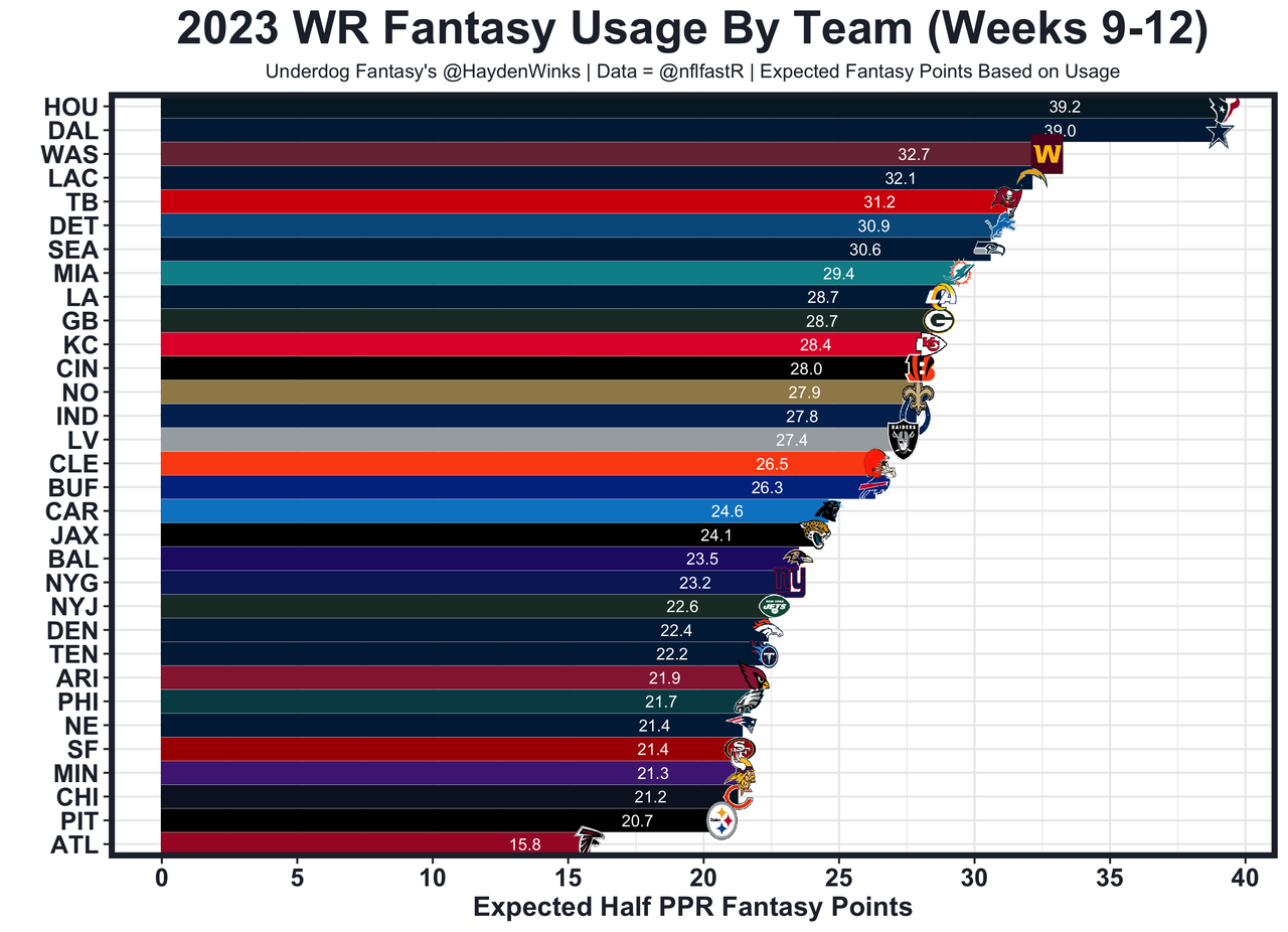 Posted every Tuesday, The Fantasy Usage Model combines my expected fantasy points model with his film notes to recap the previous week's game. An explanation of this is here, but it basically turns targets, carries, air yards, goal line touches, and other variables into expected fantasy points. We have the sickest fantasy show ever on Tuesday nights going over this column. If you have time for 1 hour of fantasy content, make it this one.