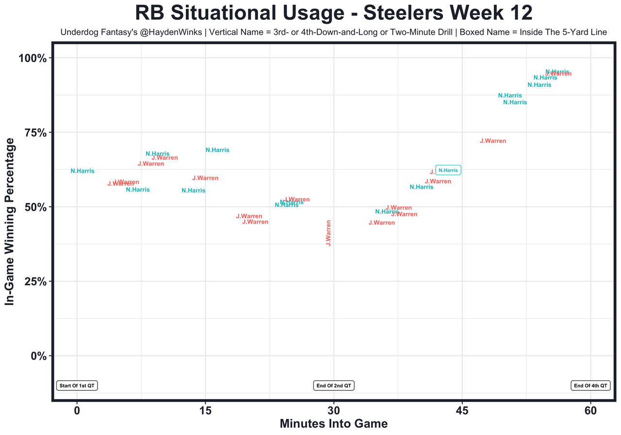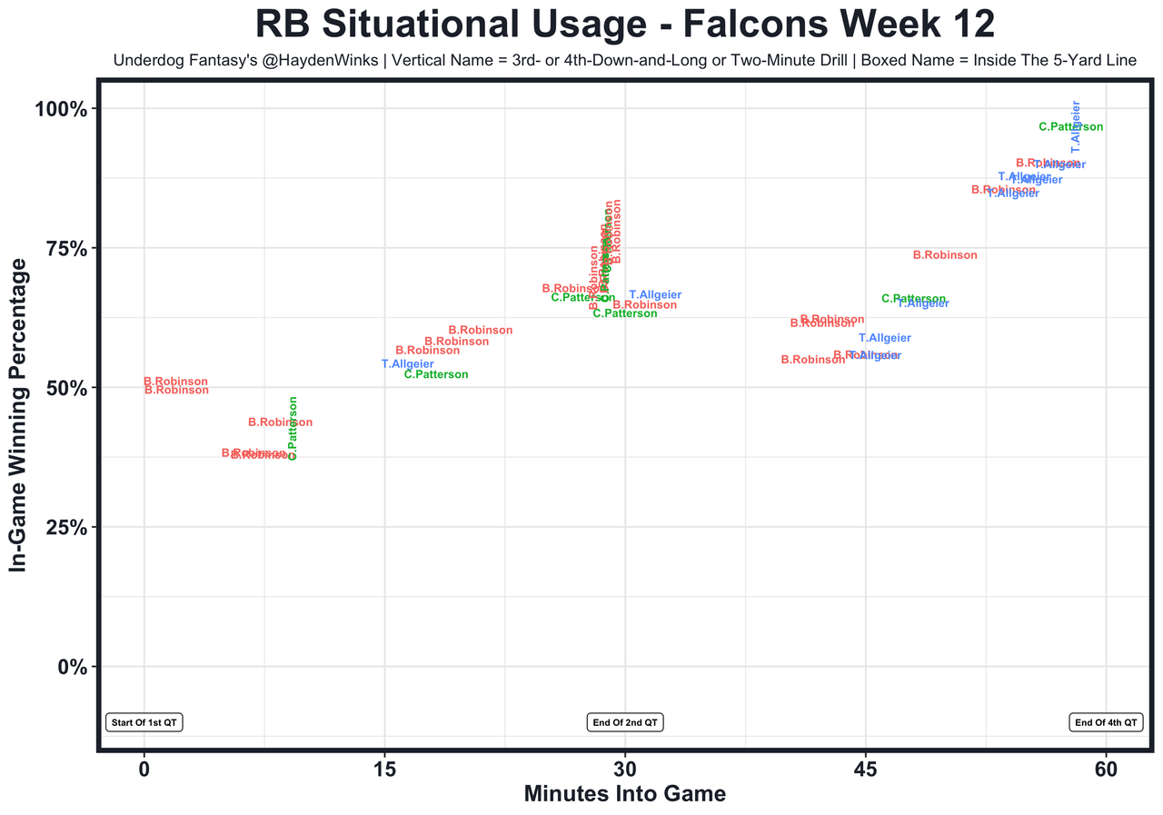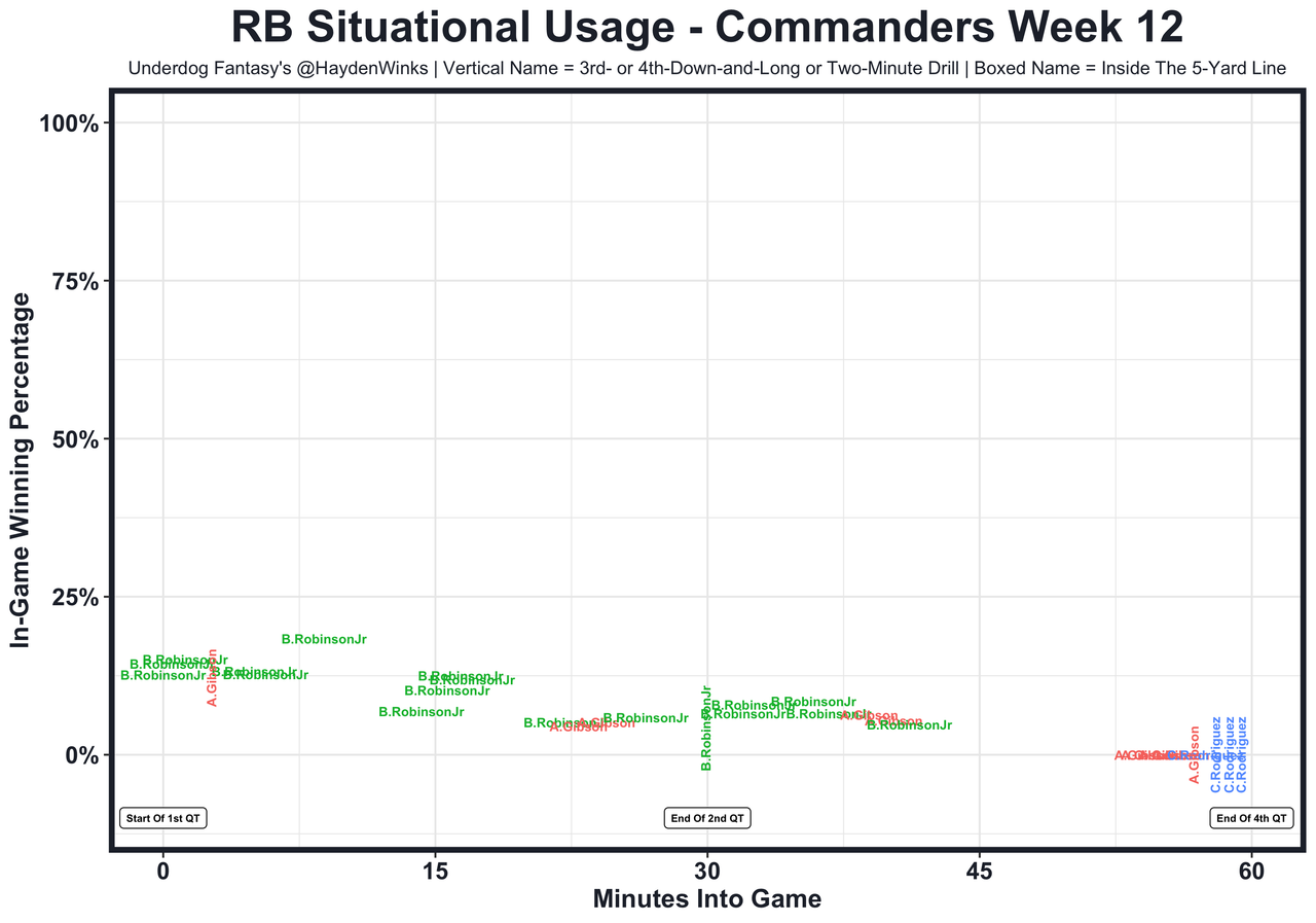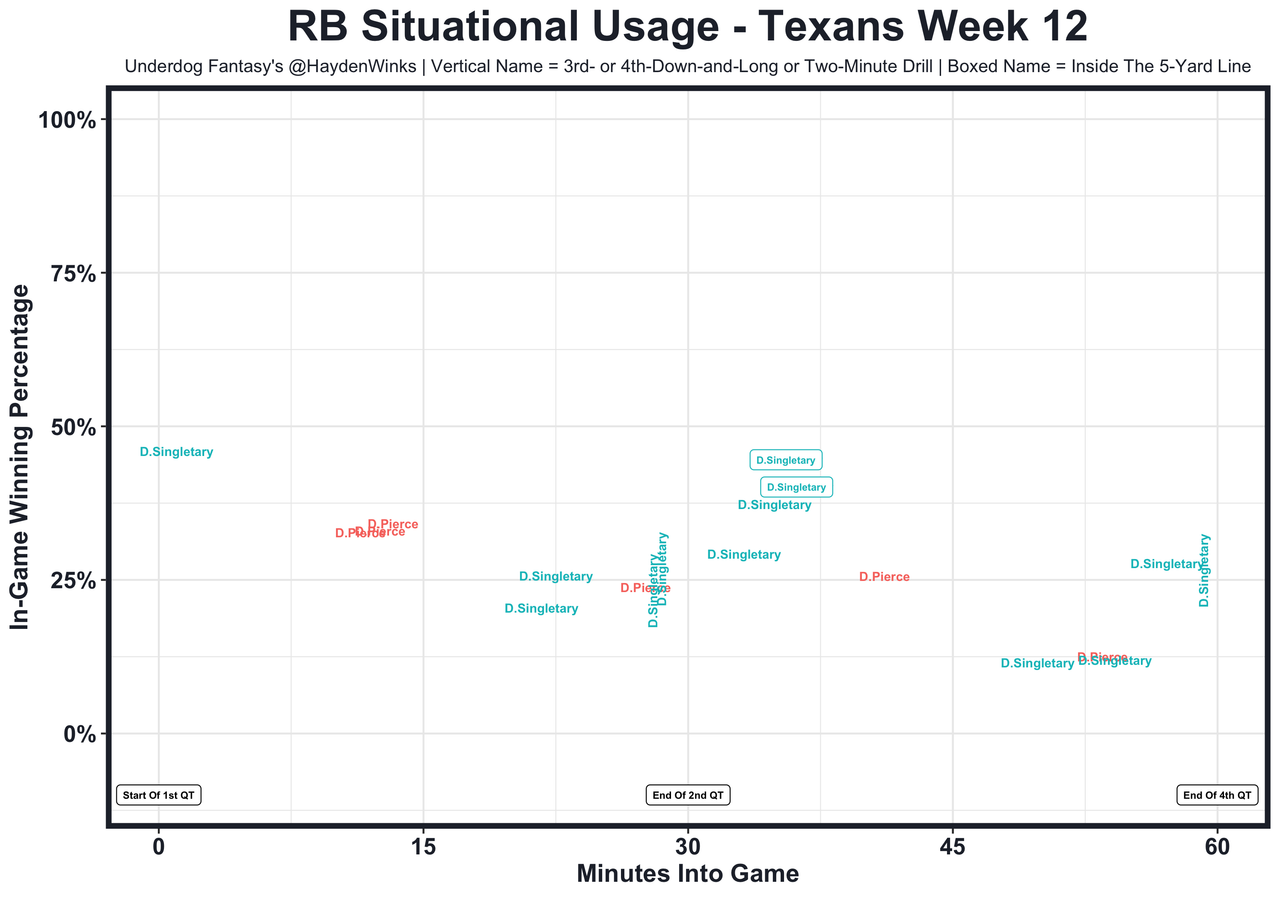 Posted every Tuesday, The Fantasy Usage Model combines my expected fantasy points model with his film notes to recap the previous week's game. An explanation of this is here, but it basically turns targets, carries, air yards, goal line touches, and other variables into expected fantasy points. We have the sickest fantasy show ever on Tuesday nights going over this column. If you have time for 1 hour of fantasy content, make it this one.
