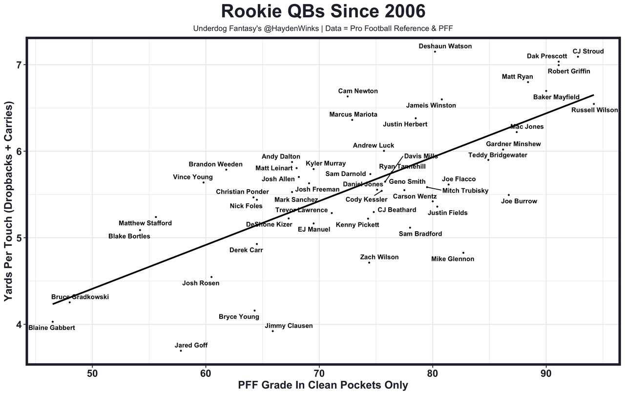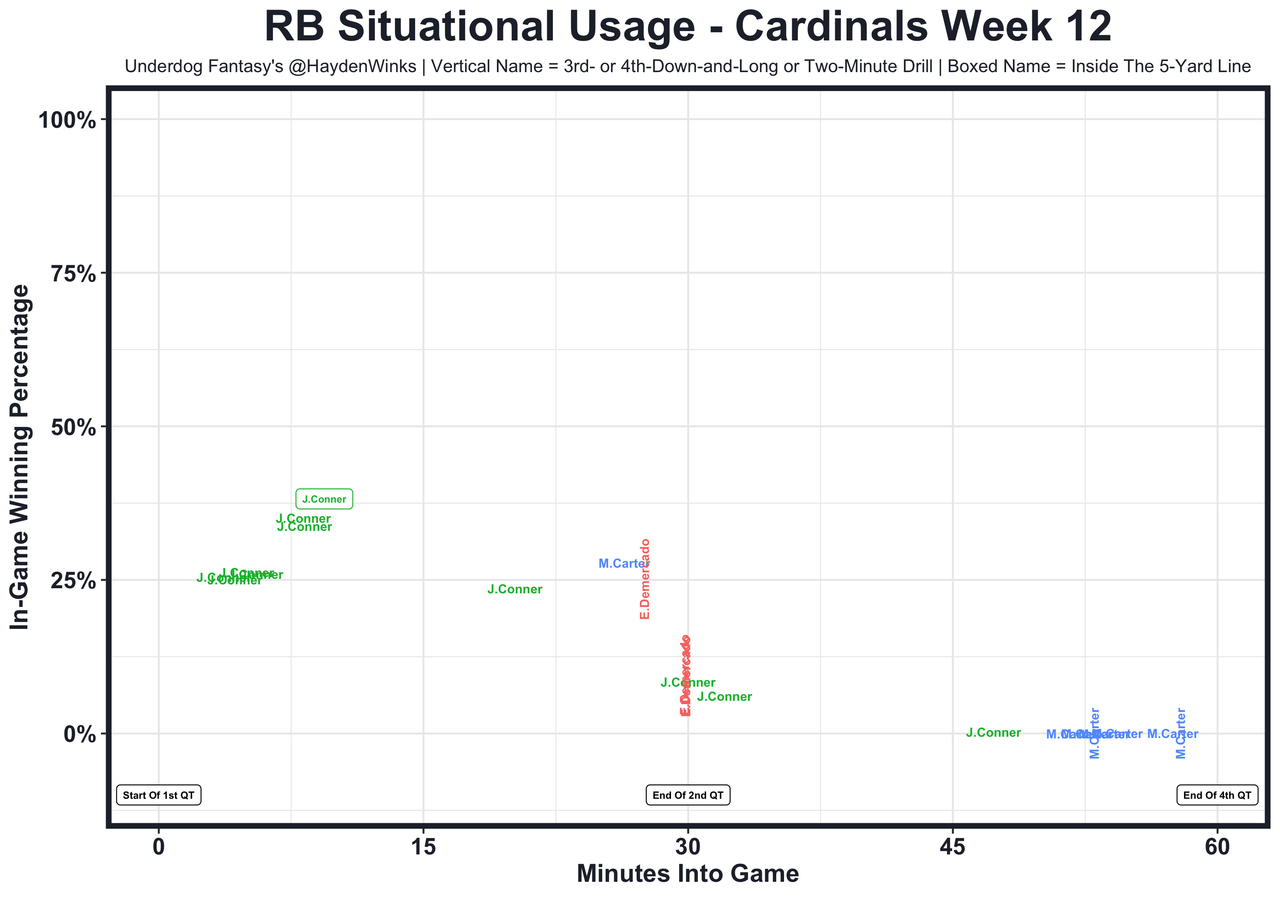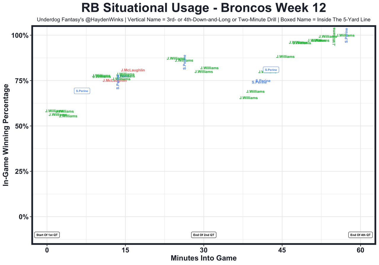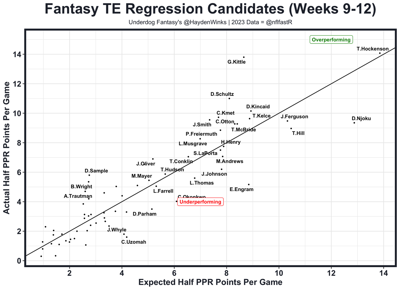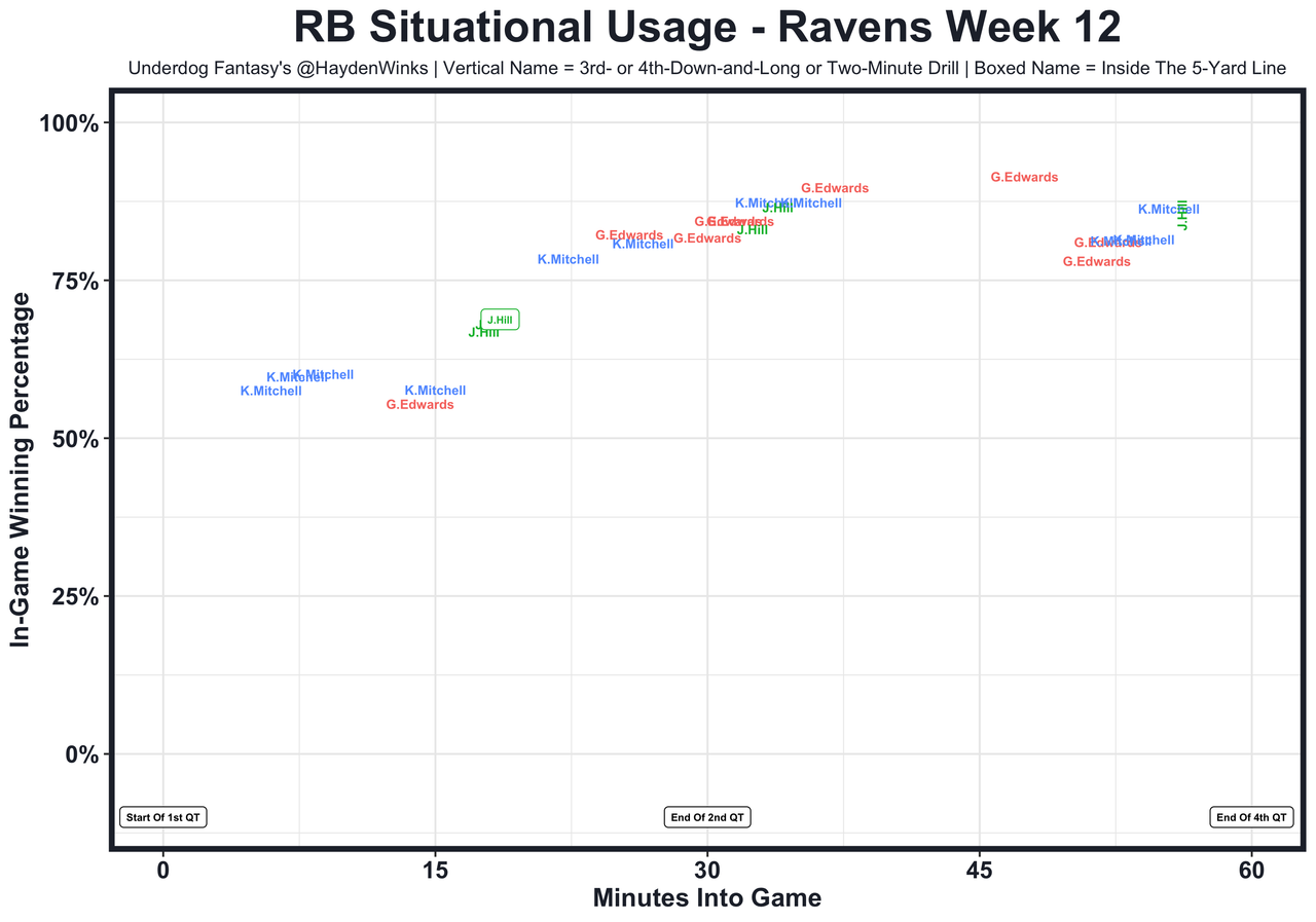 Posted every Tuesday, The Fantasy Usage Model combines my expected fantasy points model with his film notes to recap the previous week's game. An explanation of this is here, but it basically turns targets, carries, air yards, goal line touches, and other variables into expected fantasy points. We have the sickest fantasy show ever on Tuesday nights going over this column. If you have time for 1 hour of fantasy content, make it this one.