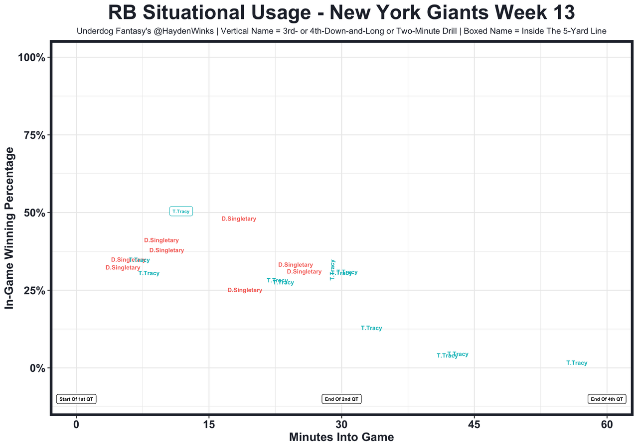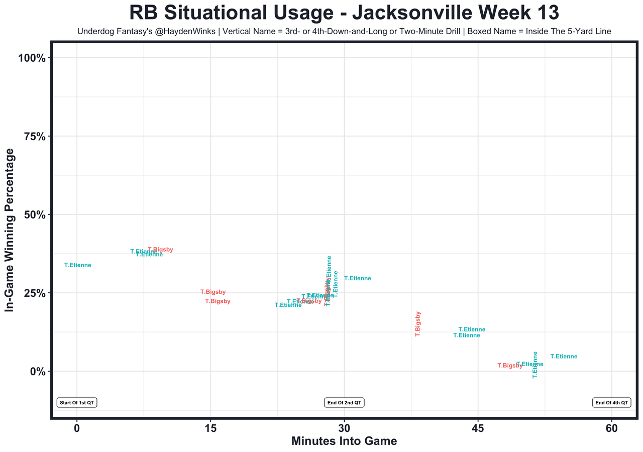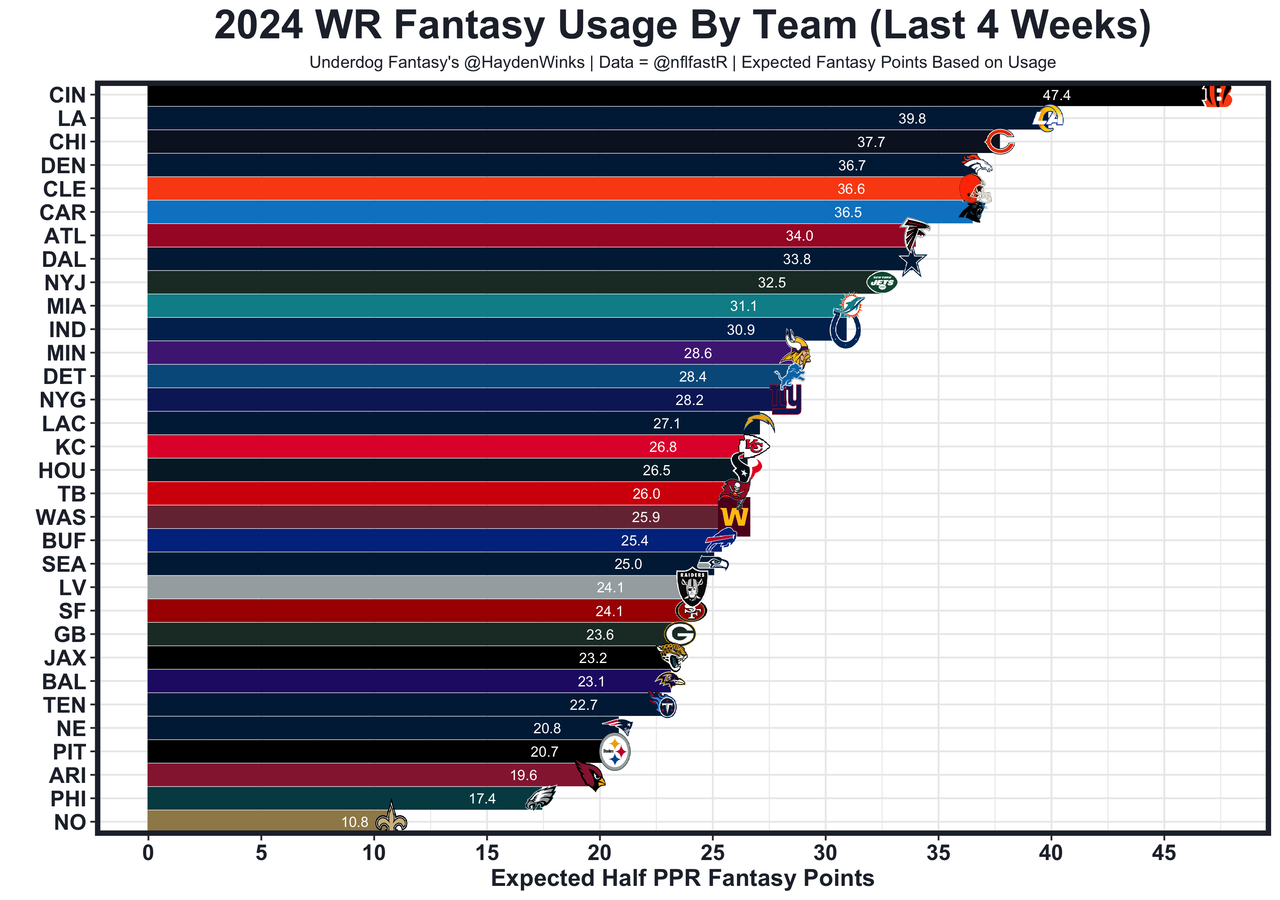 Posted every Tuesday, The Fantasy Usage Model combines my expected fantasy points model with his film notes to recap the previous week's game. An explanation of this is here, but it basically turns targets, carries, air yards, goal line touches, and other variables into expected fantasy points. We have the sickest fantasy show ever on Tuesday nights going over this column. If you have time for 1 hour of fantasy content, make it this one.