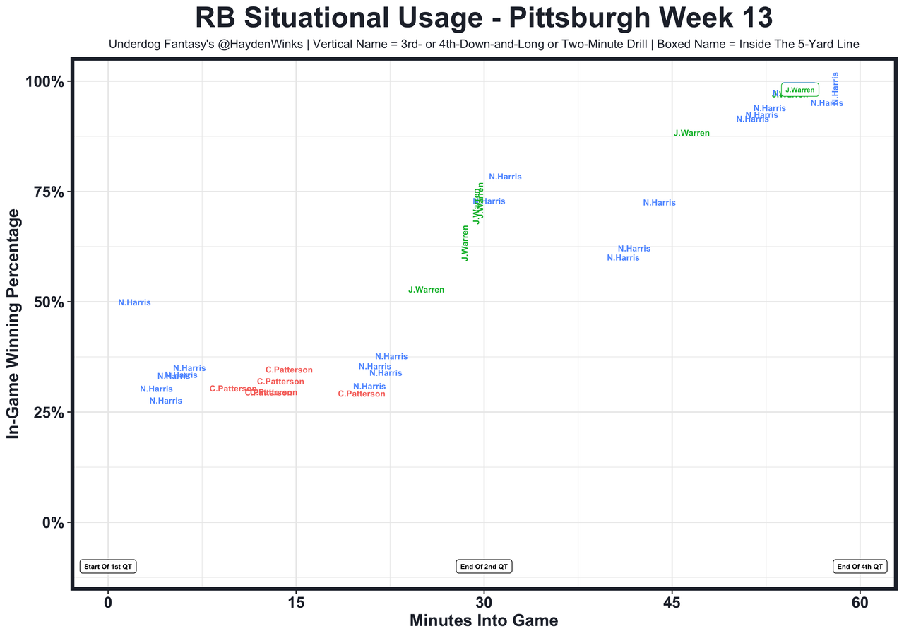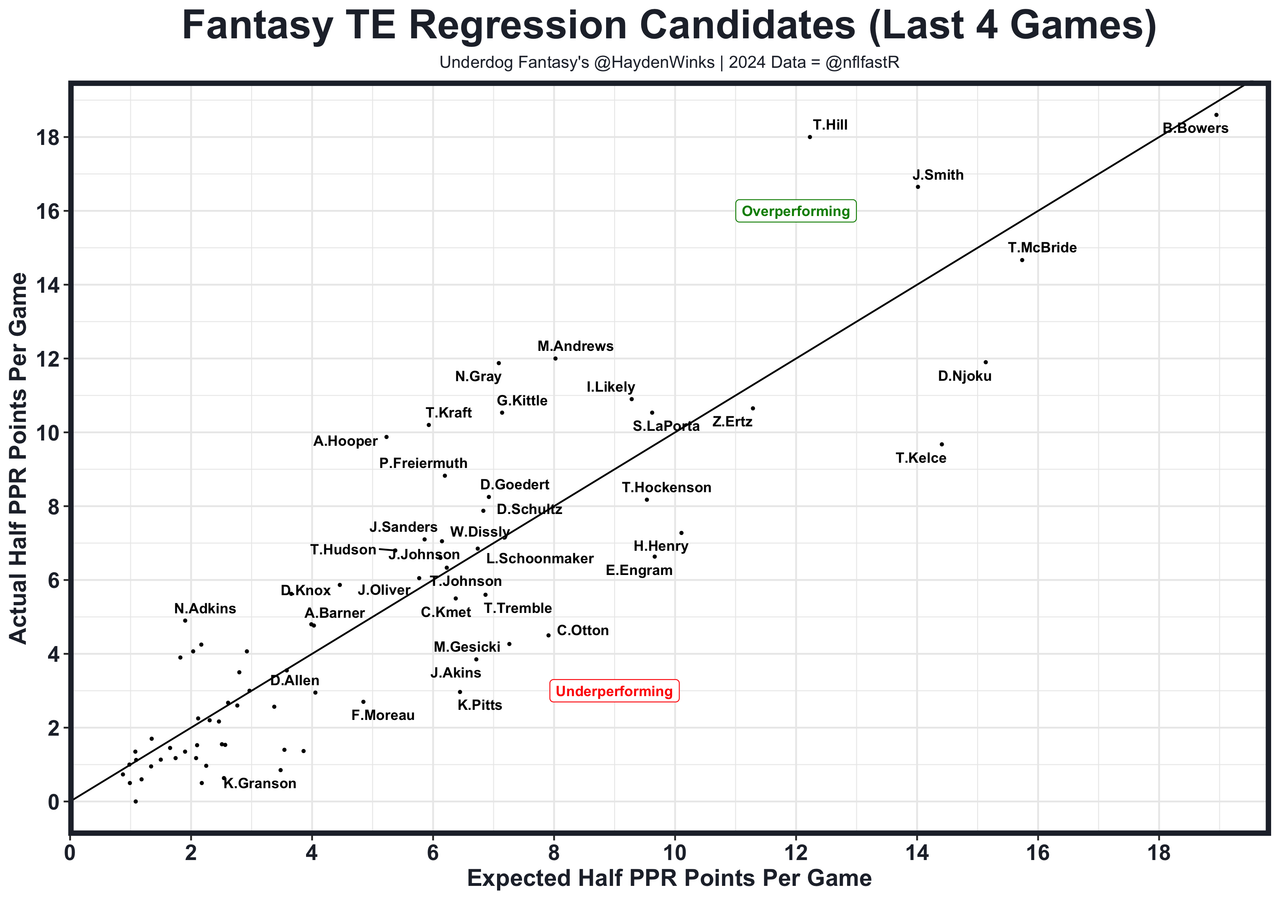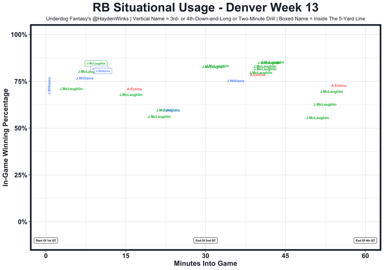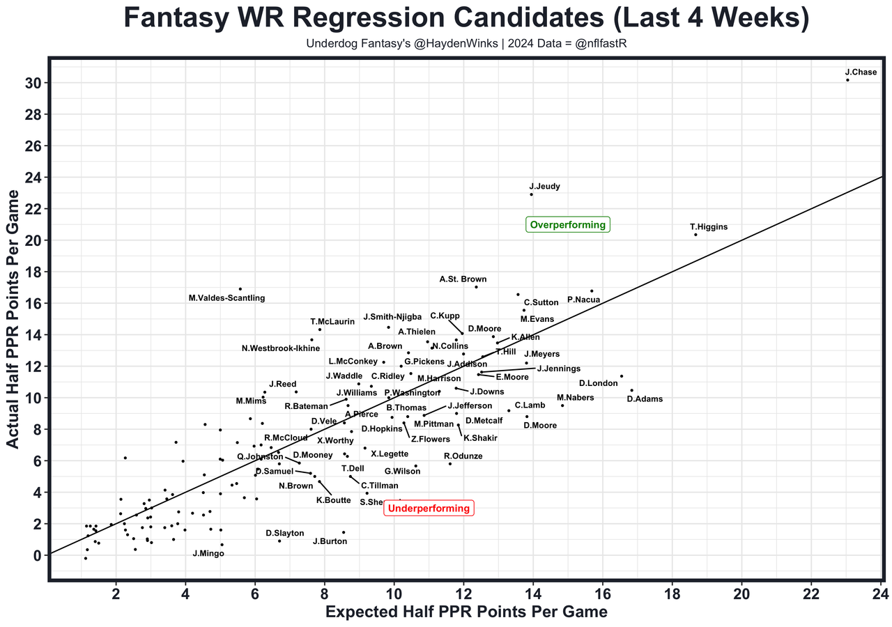 Posted every Tuesday, The Fantasy Usage Model combines my expected fantasy points model with his film notes to recap the previous week's game. An explanation of this is here, but it basically turns targets, carries, air yards, goal line touches, and other variables into expected fantasy points. We have the sickest fantasy show ever on Tuesday nights going over this column. If you have time for 1 hour of fantasy content, make it this one.