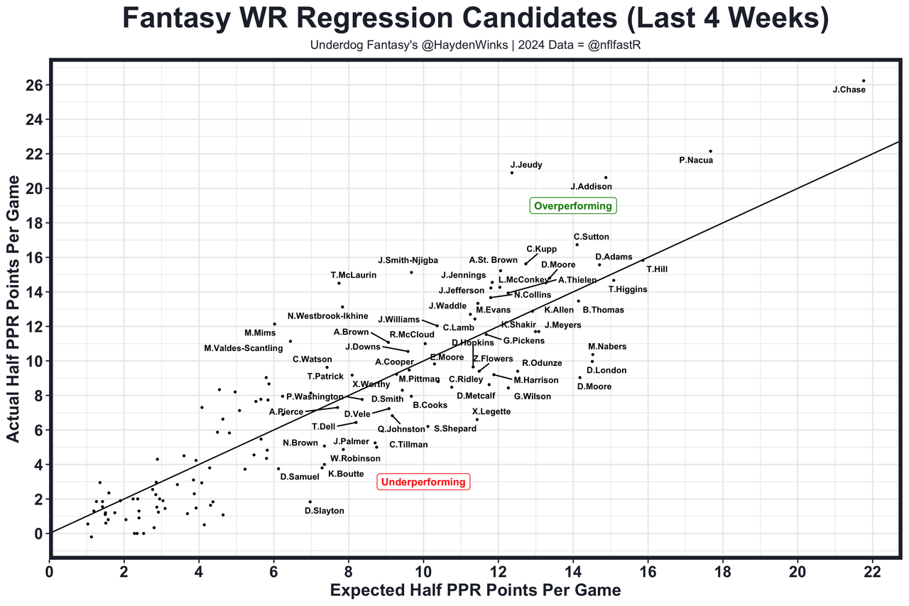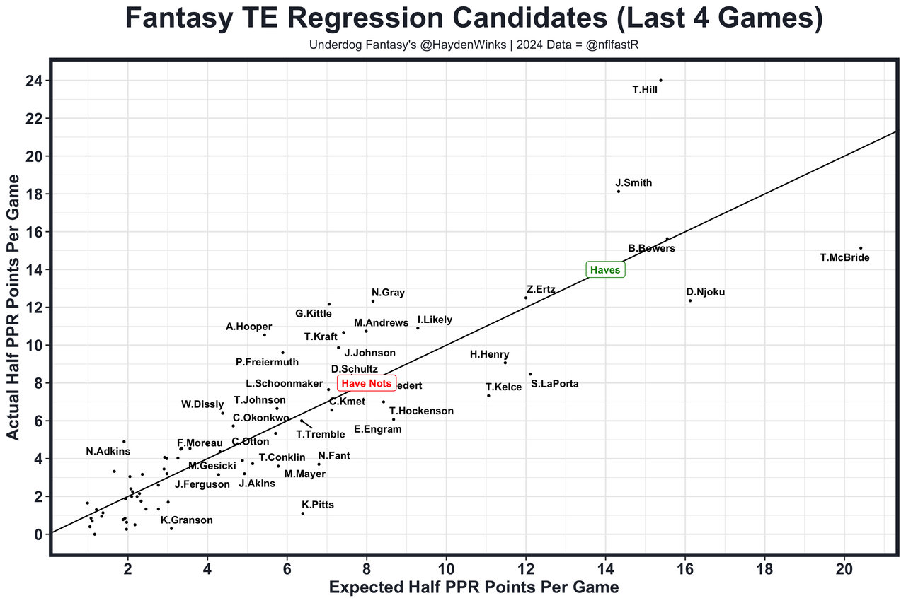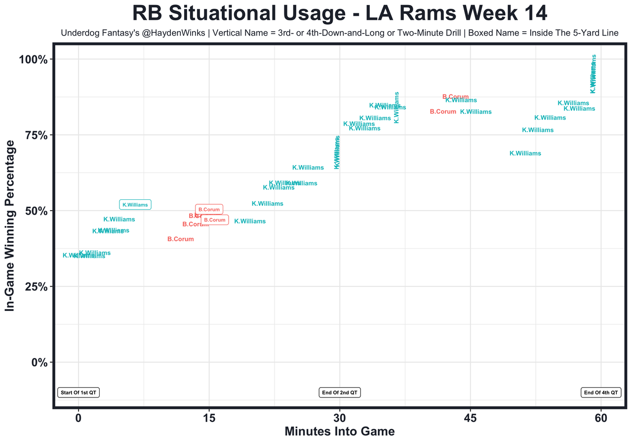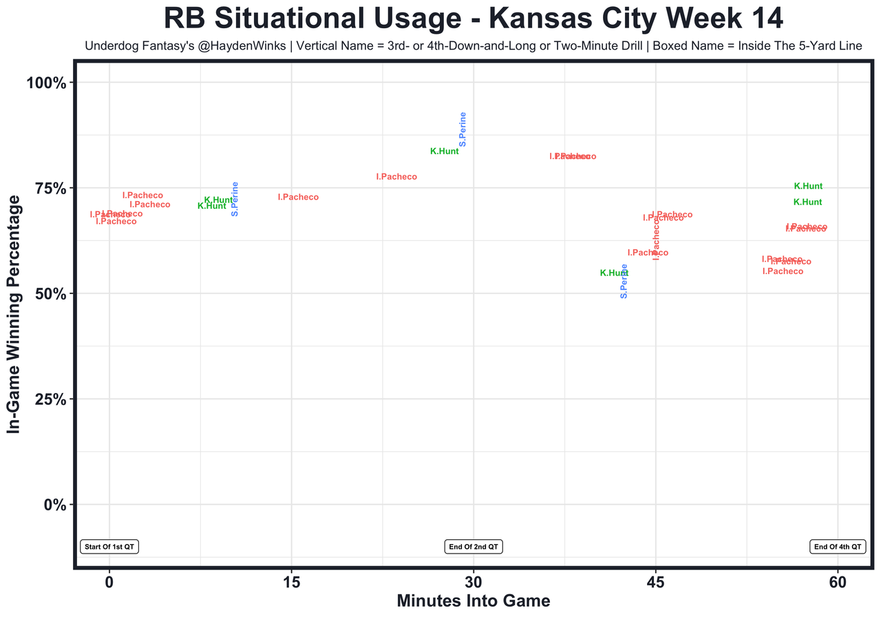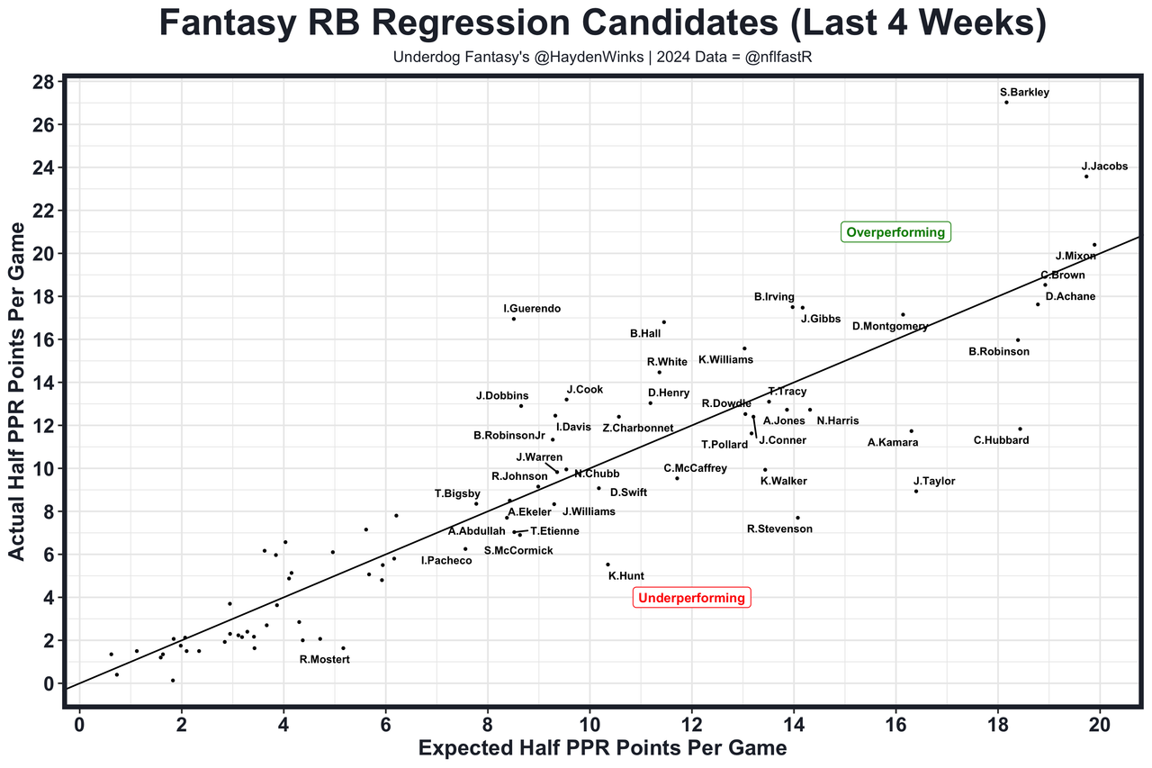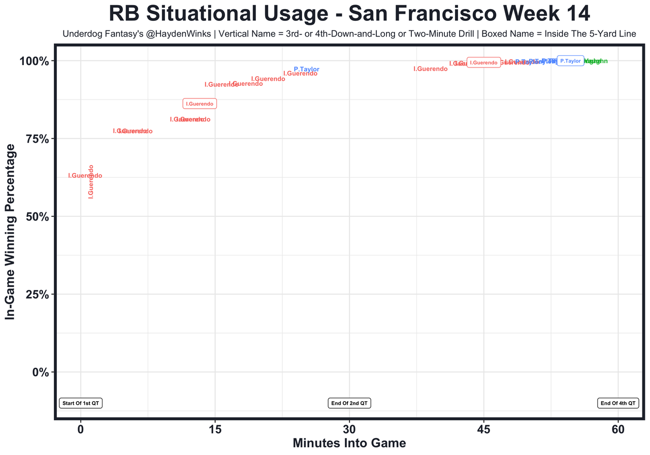 Posted every Tuesday, The Fantasy Usage Model combines my expected fantasy points model with his film notes to recap the previous week's game. An explanation of this is here, but it basically turns targets, carries, air yards, goal line touches, and other variables into expected fantasy points. We have the sickest fantasy show ever on Tuesday nights going over this column. If you have time for 1 hour of fantasy content, make it this one.