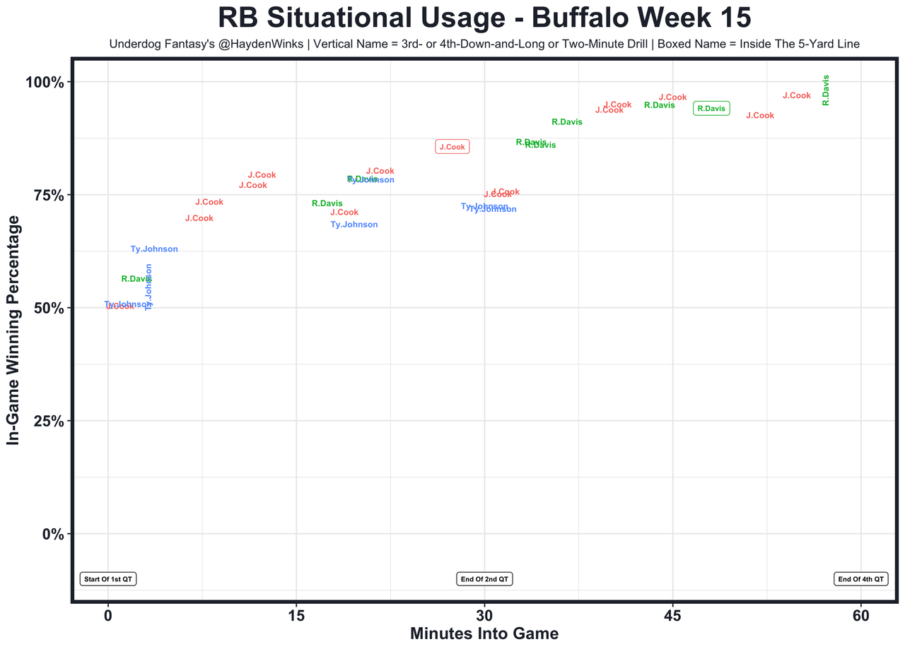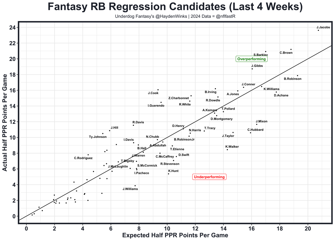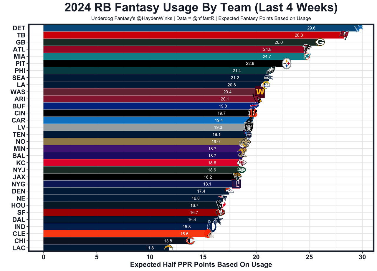 Posted every Tuesday, The Fantasy Usage Model combines my expected fantasy points model with his film notes to recap the previous week's game. An explanation of this is here, but it basically turns targets, carries, air yards, goal line touches, and other variables into expected fantasy points. We have the sickest fantasy show ever on Tuesday nights going over this column. If you have time for 1 hour of fantasy content, make it this one.