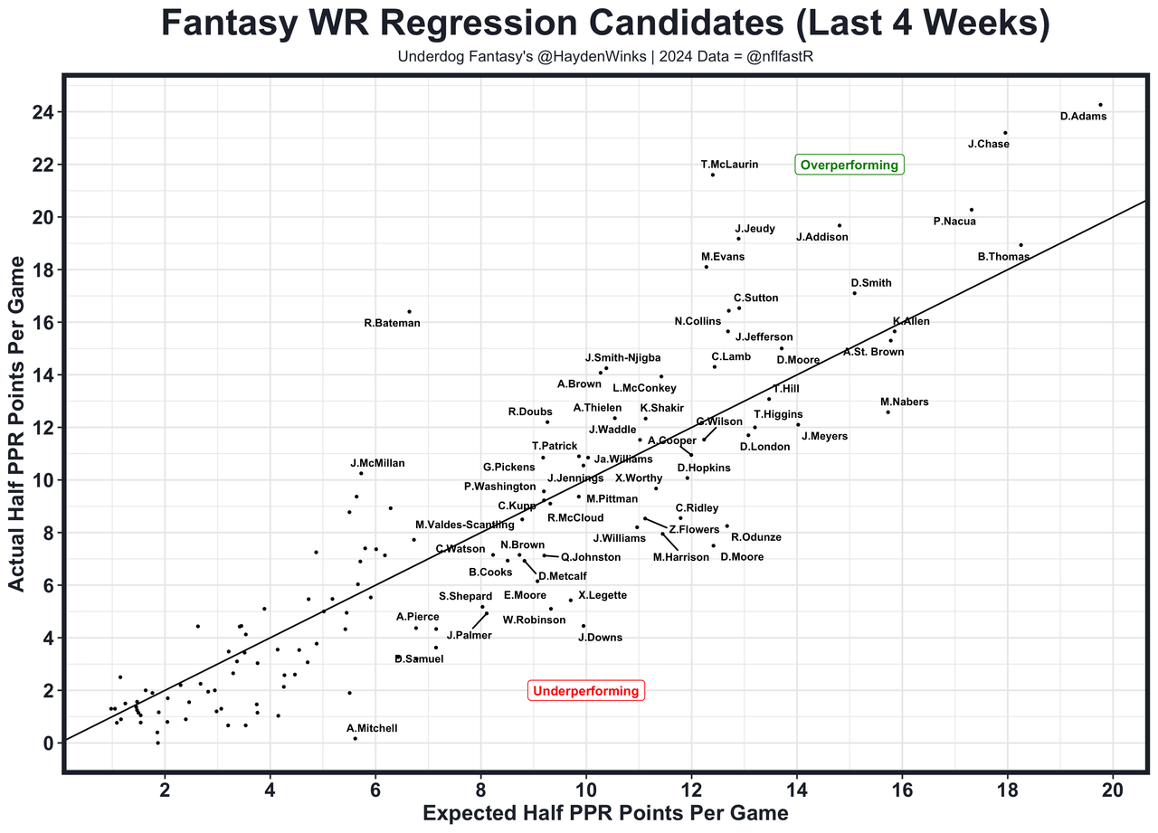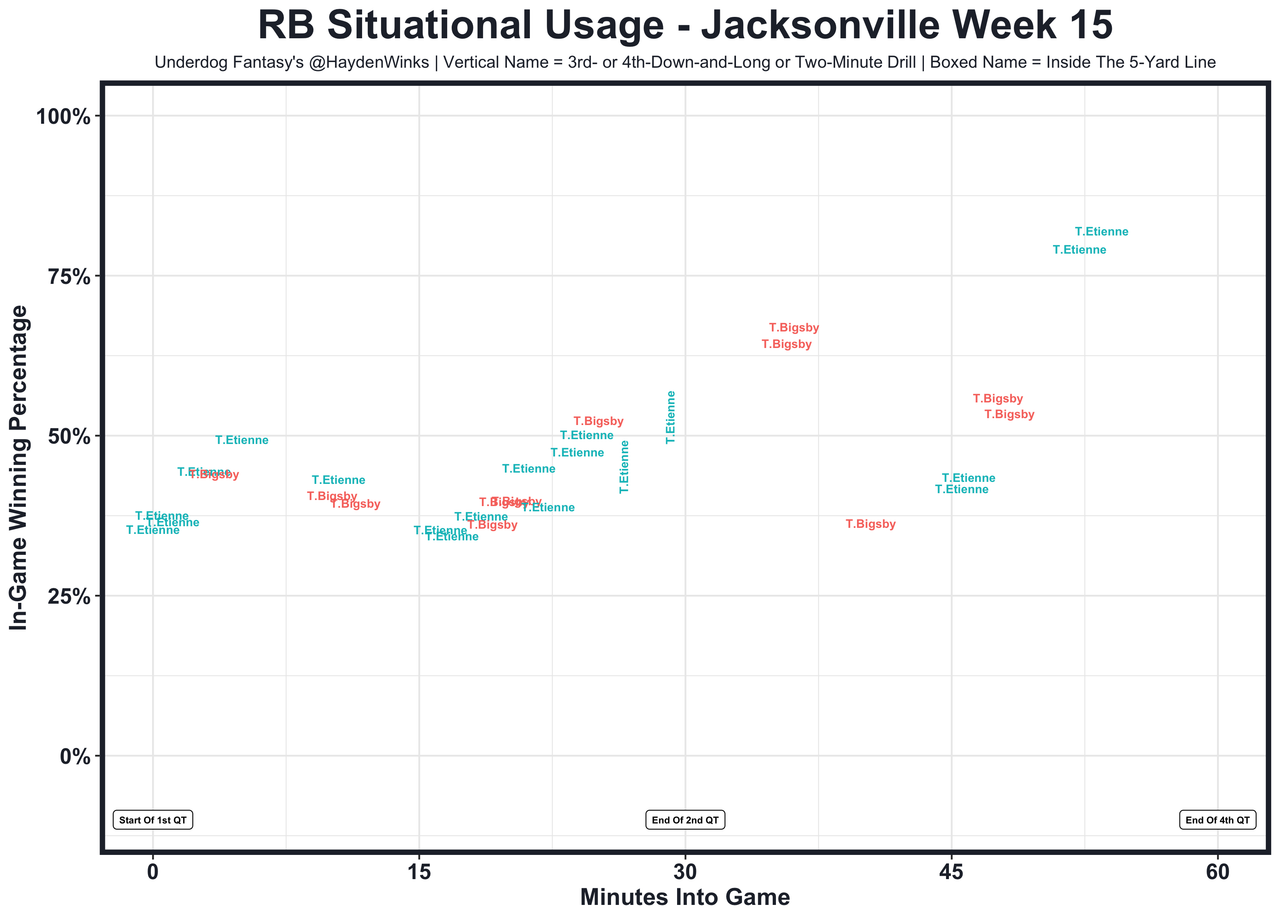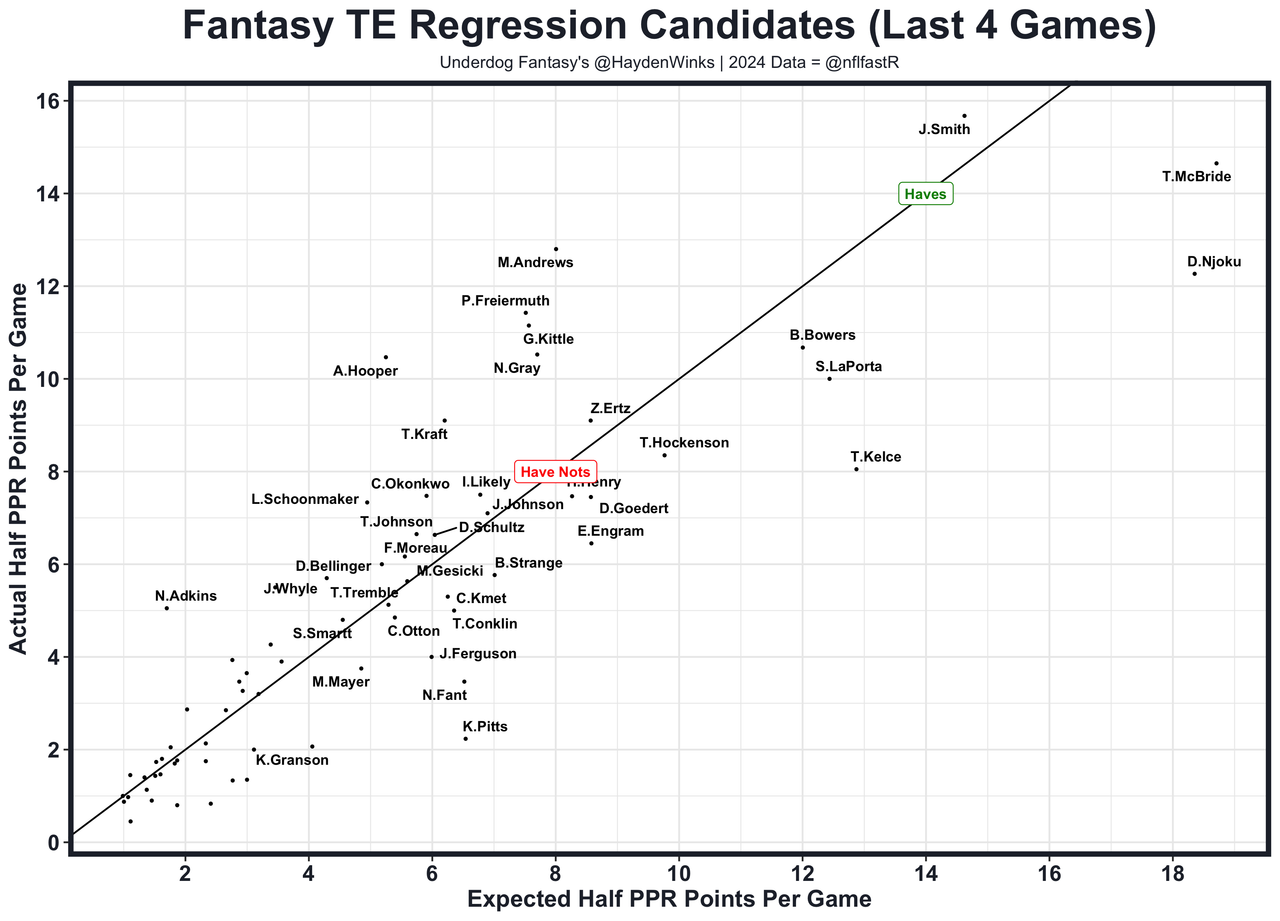 Posted every Tuesday, The Fantasy Usage Model combines my expected fantasy points model with his film notes to recap the previous week's game. An explanation of this is here, but it basically turns targets, carries, air yards, goal line touches, and other variables into expected fantasy points. We have the sickest fantasy show ever on Tuesday nights going over this column. If you have time for 1 hour of fantasy content, make it this one.
