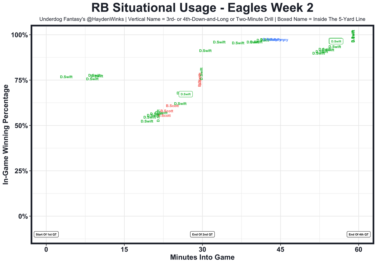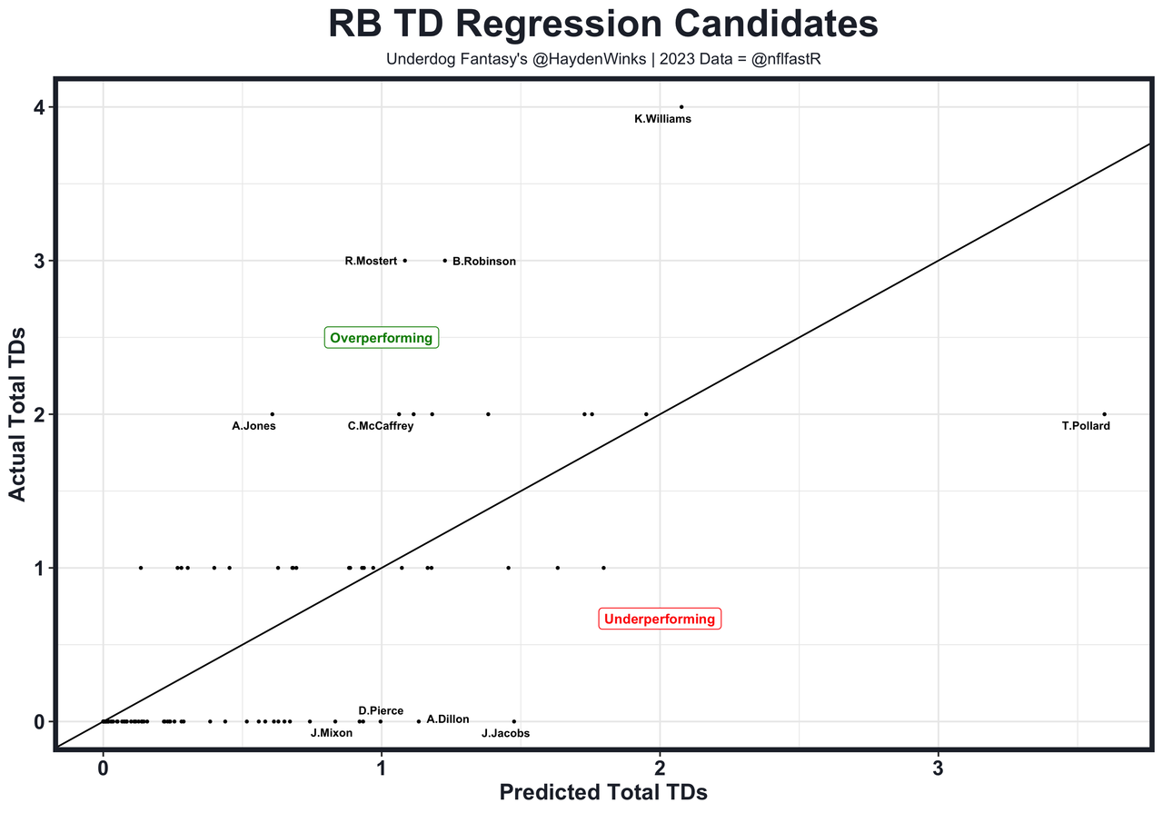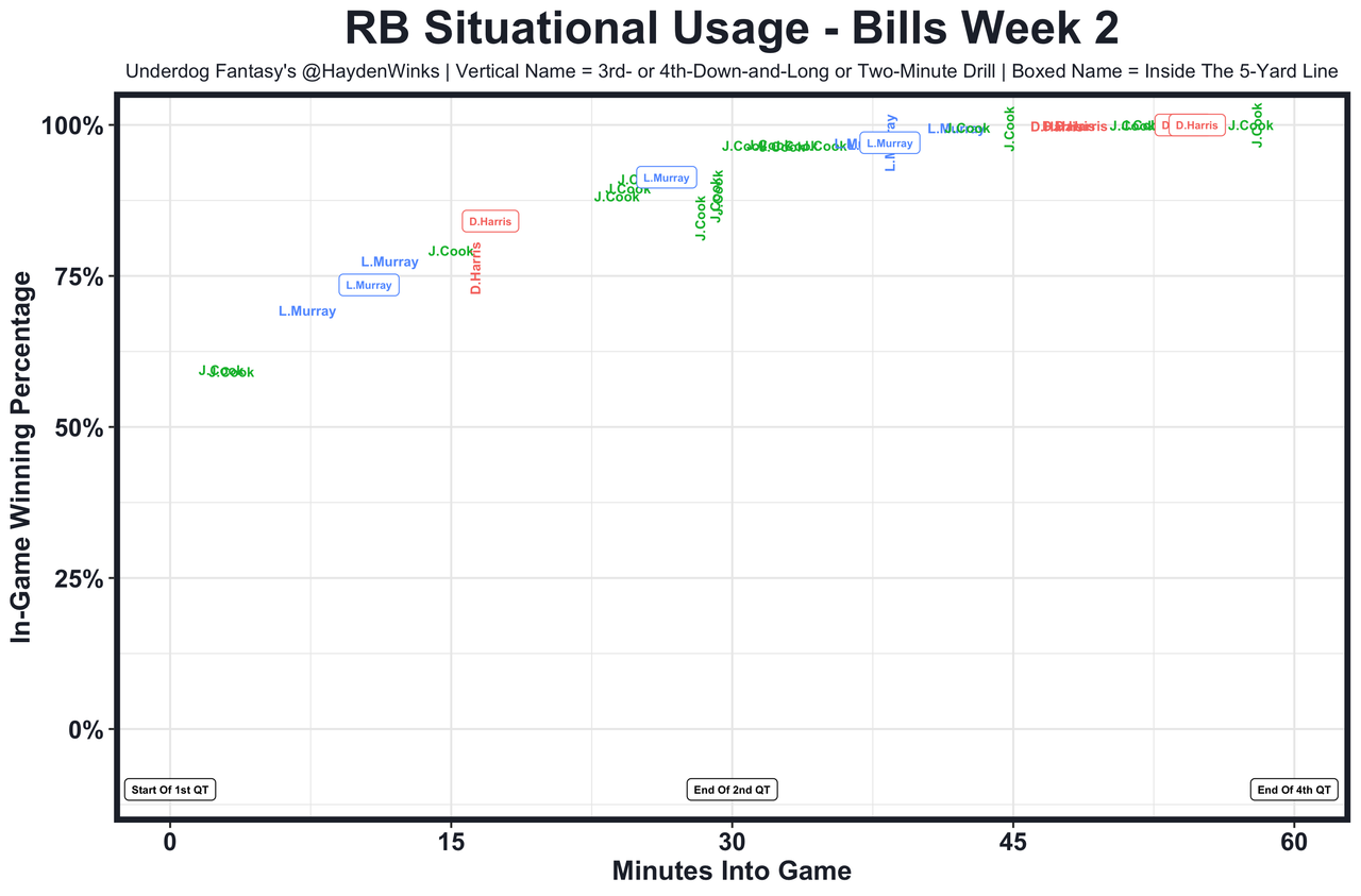 Posted every Tuesday, The Fantasy Usage Model combines my expected fantasy points model with his film notes to recap the previous week's game. An explanation of this is here, but it basically turns targets, carries, air yards, goal line touches, and other variables into expected fantasy points. We have the sickest fantasy show ever on Tuesday nights going over this column. If you have time for 1 hour of fantasy content, make it this one.