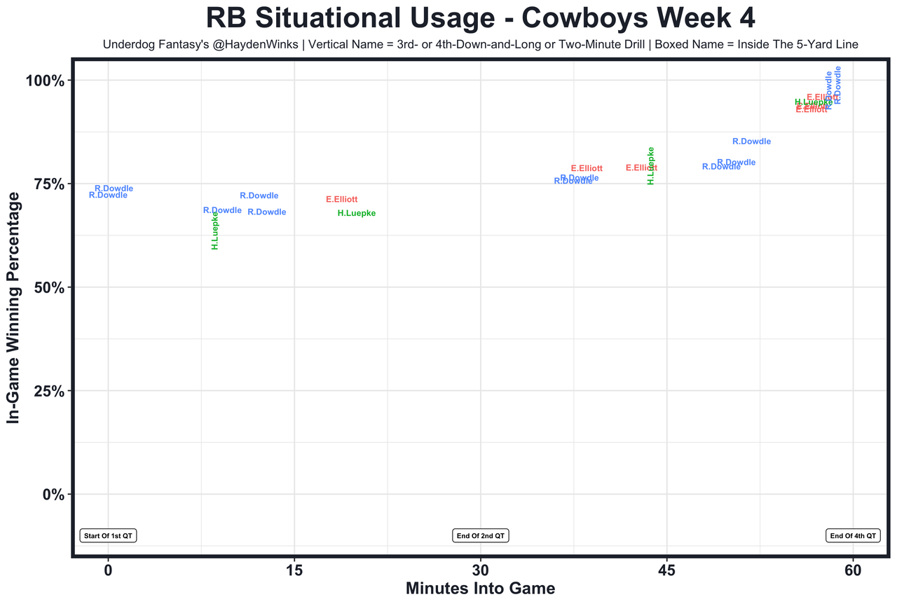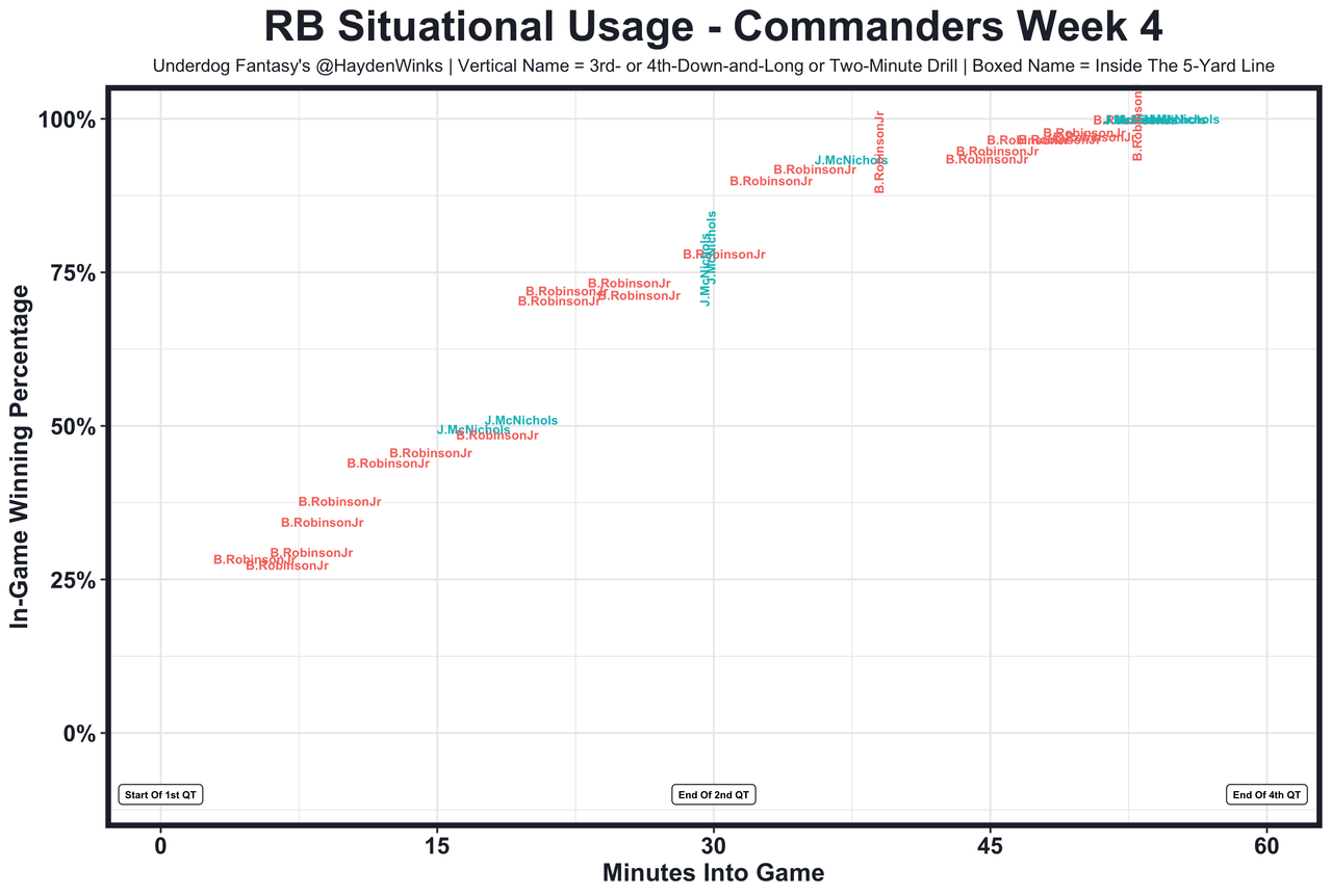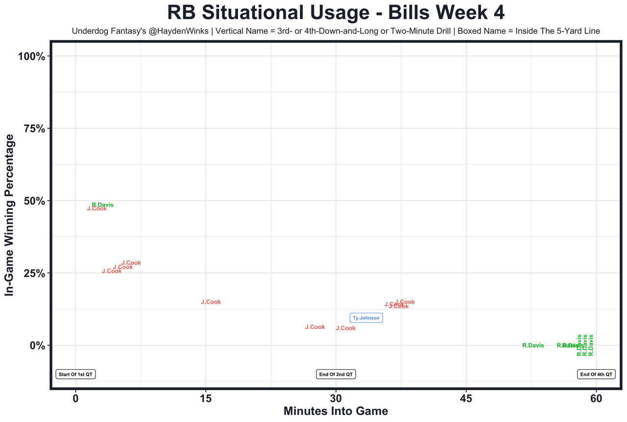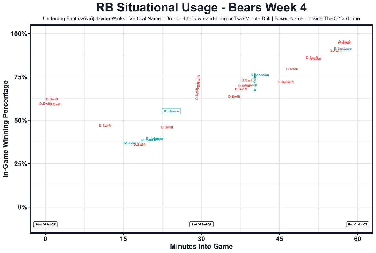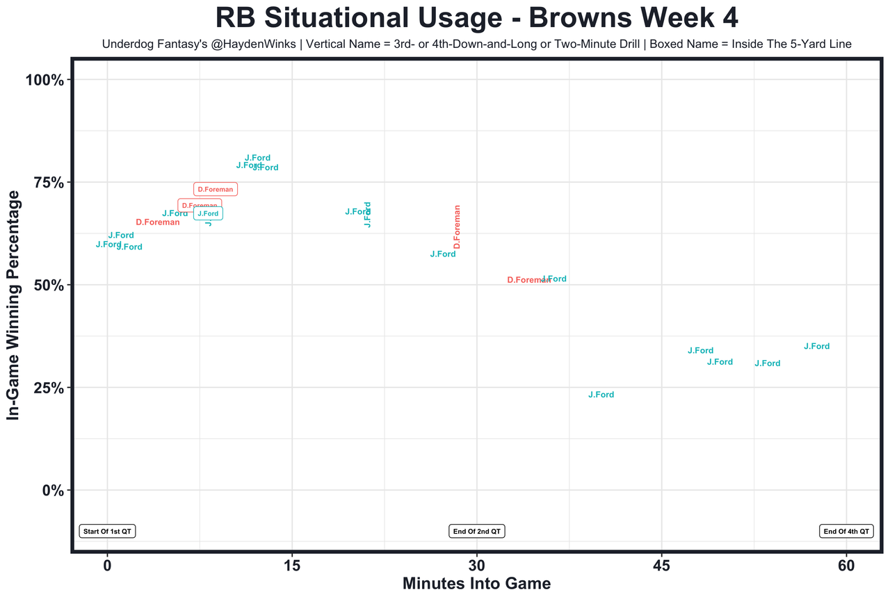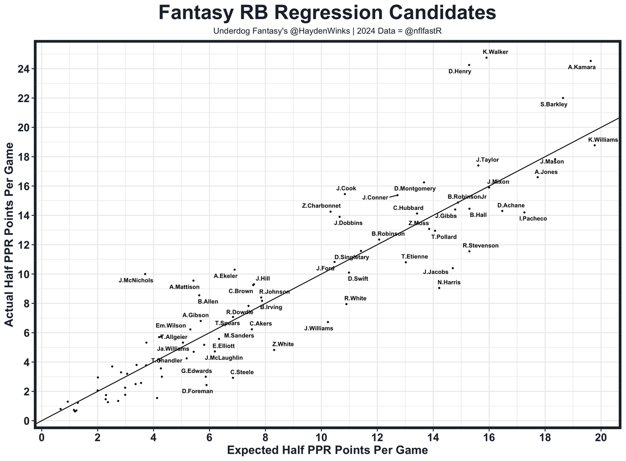 Posted every Tuesday, The Fantasy Usage Model combines my expected fantasy points model with his film notes to recap the previous week's game. An explanation of this is here, but it basically turns targets, carries, air yards, goal line touches, and other variables into expected fantasy points. We have the sickest fantasy show ever on Tuesday nights going over this column. If you have time for 1 hour of fantasy content, make it this one.