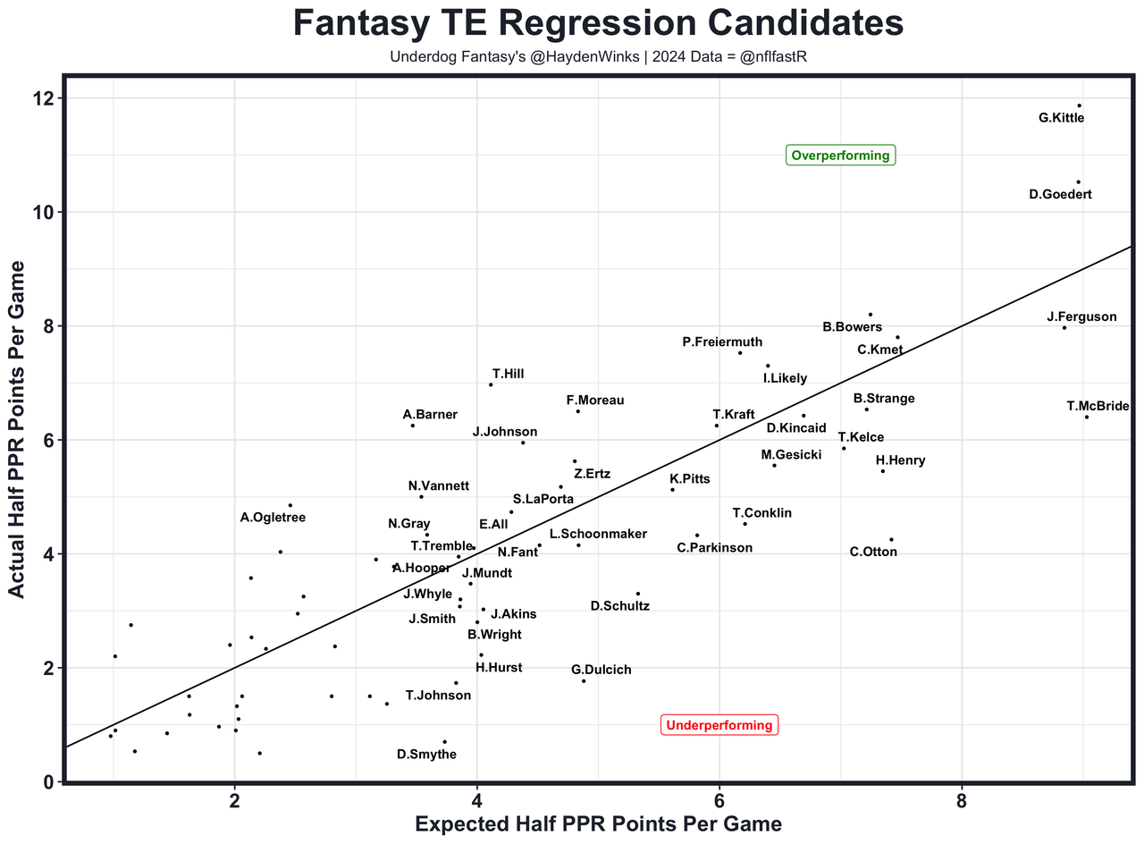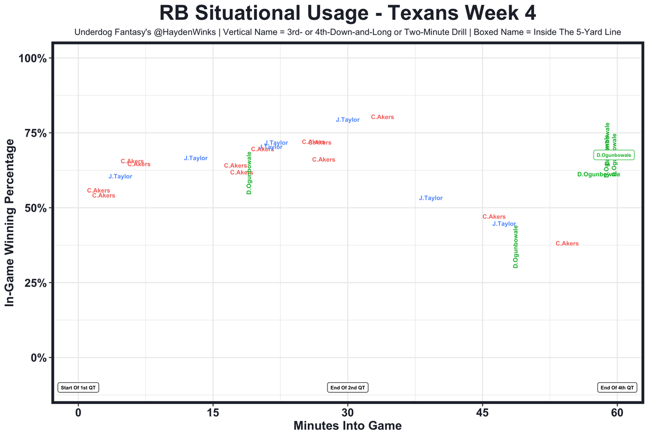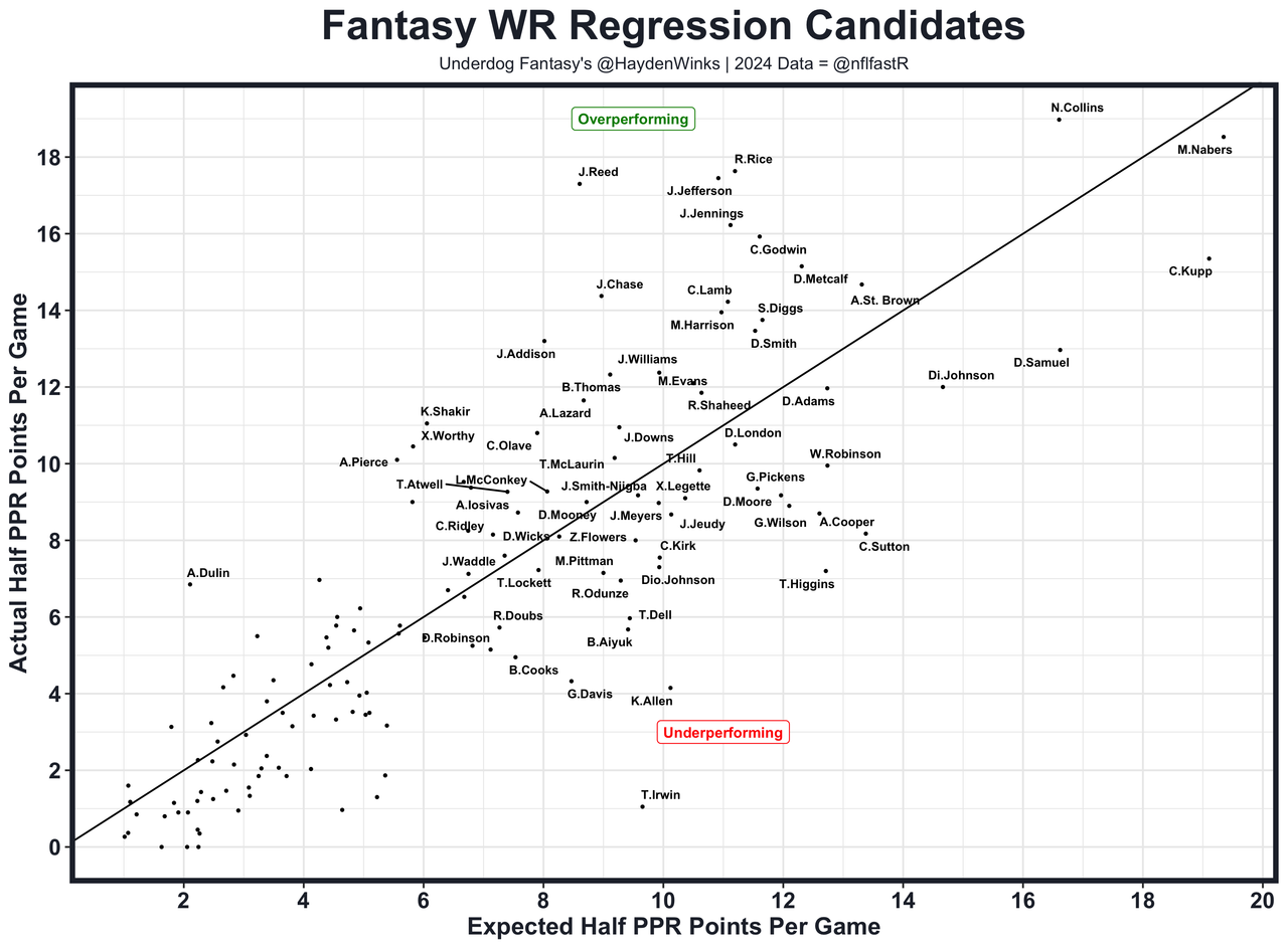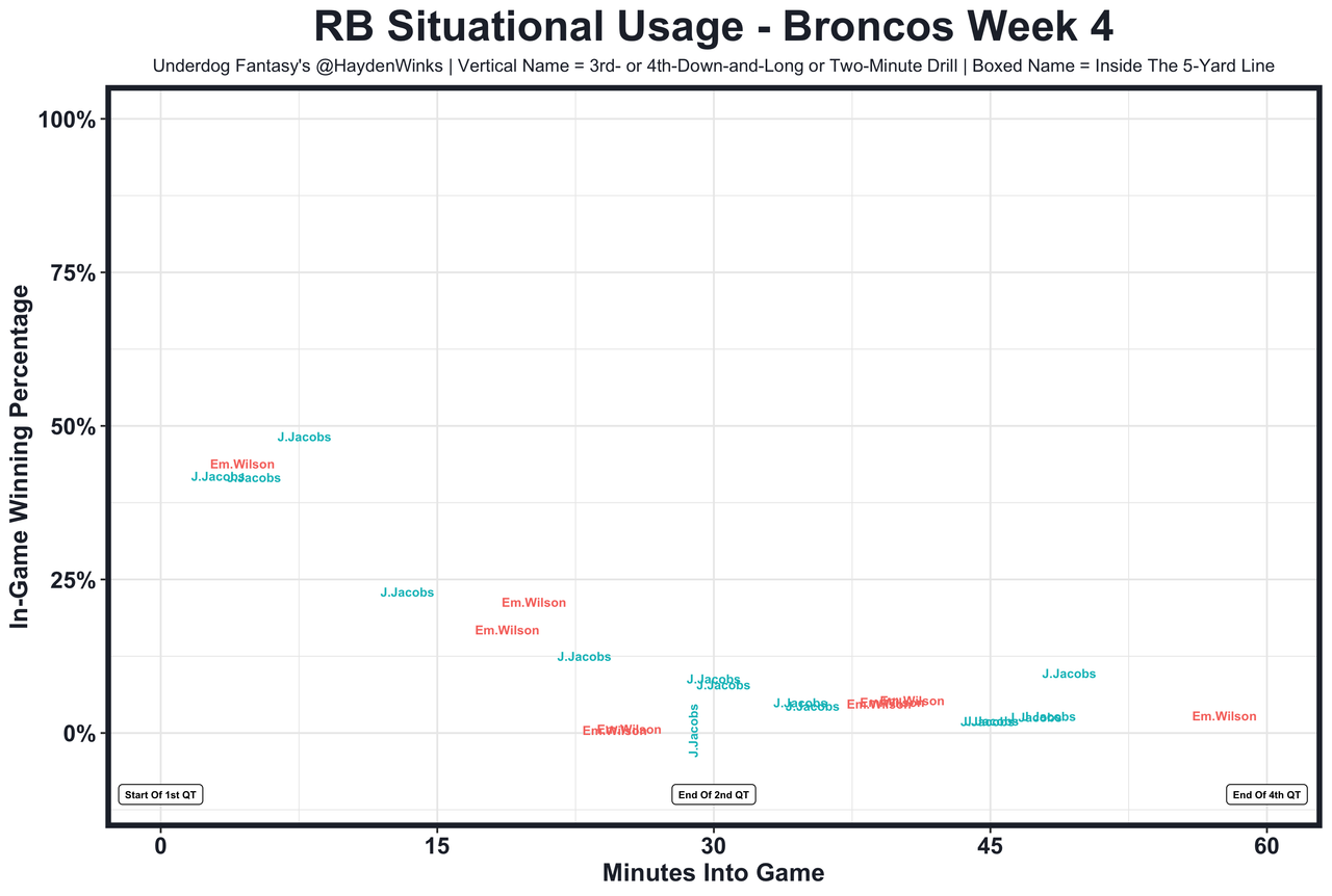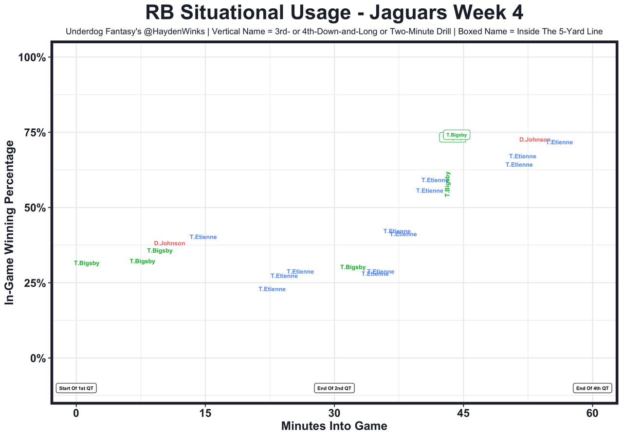 Posted every Tuesday, The Fantasy Usage Model combines my expected fantasy points model with his film notes to recap the previous week's game. An explanation of this is here, but it basically turns targets, carries, air yards, goal line touches, and other variables into expected fantasy points. We have the sickest fantasy show ever on Tuesday nights going over this column. If you have time for 1 hour of fantasy content, make it this one.