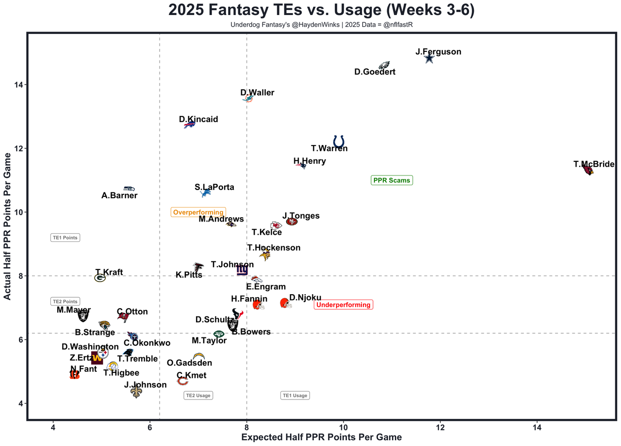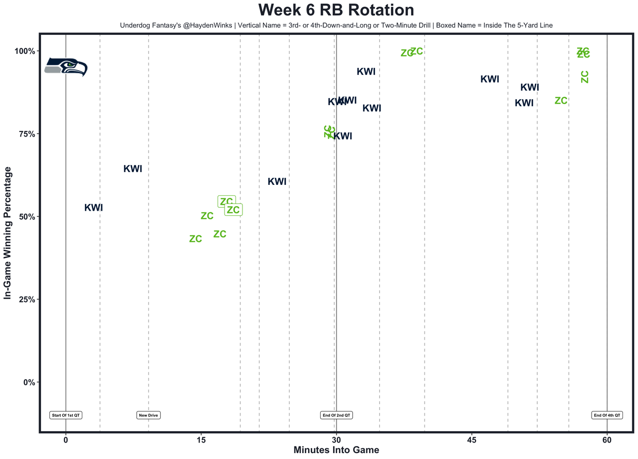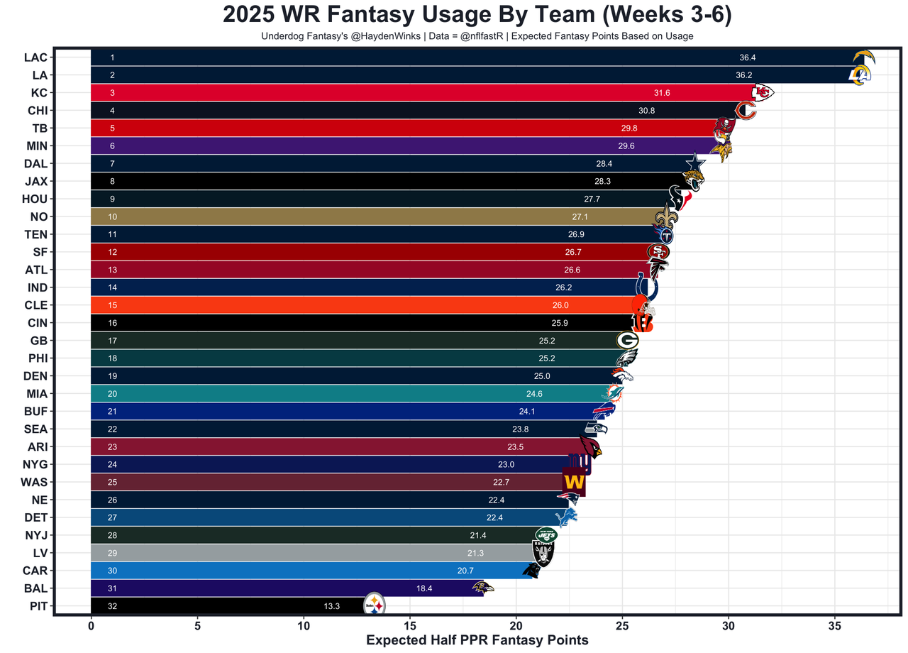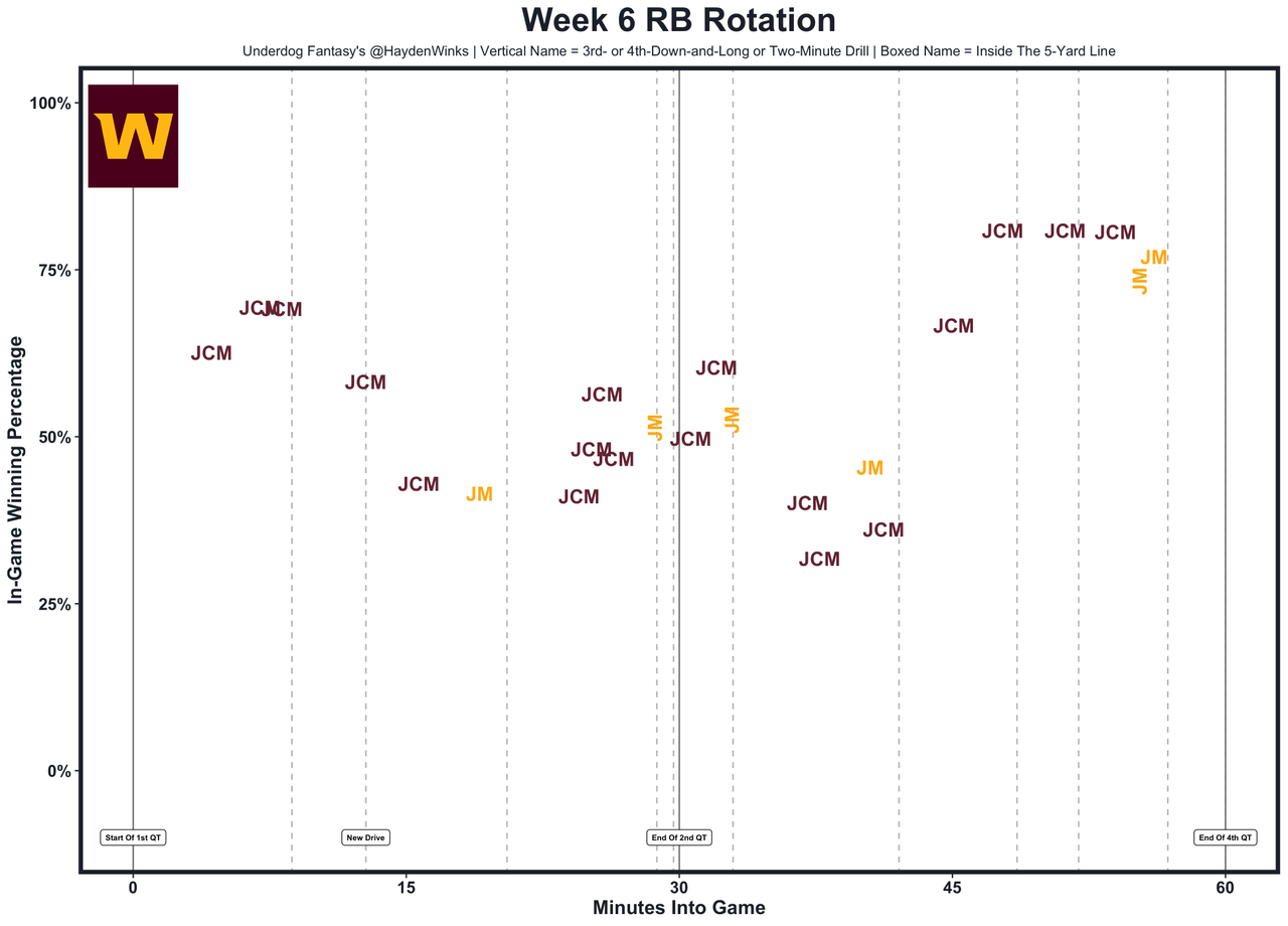 Posted every Tuesday, The Fantasy Usage Model combines my expected fantasy points model with his film notes to recap the previous week's game. An explanation of this is here, but it basically turns targets, carries, air yards, goal line touches, and other variables into expected fantasy points. We have the sickest fantasy show ever on Tuesday nights going over this column. If you have time for 1 hour of fantasy content, make it this one.