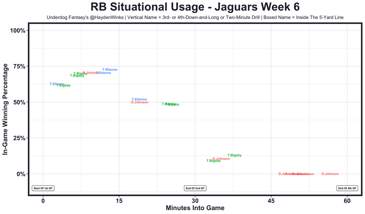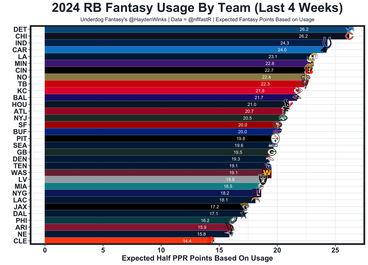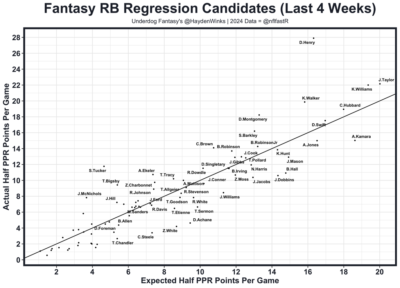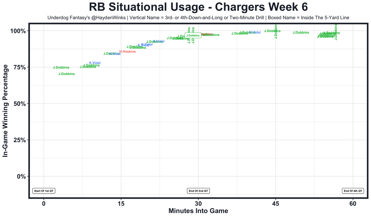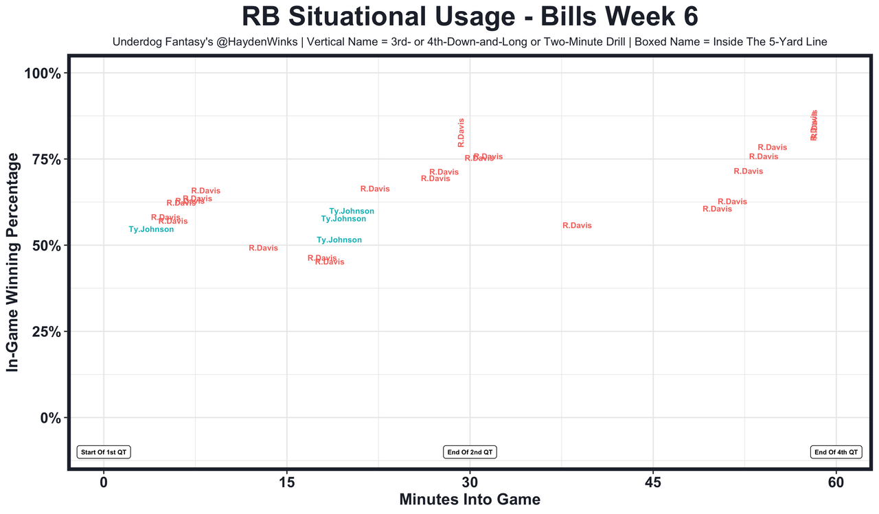 Posted every Tuesday, The Fantasy Usage Model combines my expected fantasy points model with his film notes to recap the previous week's game. An explanation of this is here, but it basically turns targets, carries, air yards, goal line touches, and other variables into expected fantasy points. We have the sickest fantasy show ever on Tuesday nights going over this column. If you have time for 1 hour of fantasy content, make it this one.