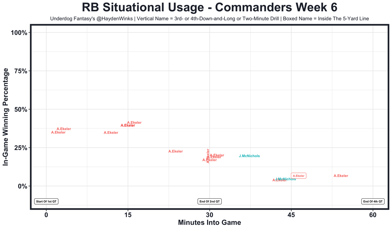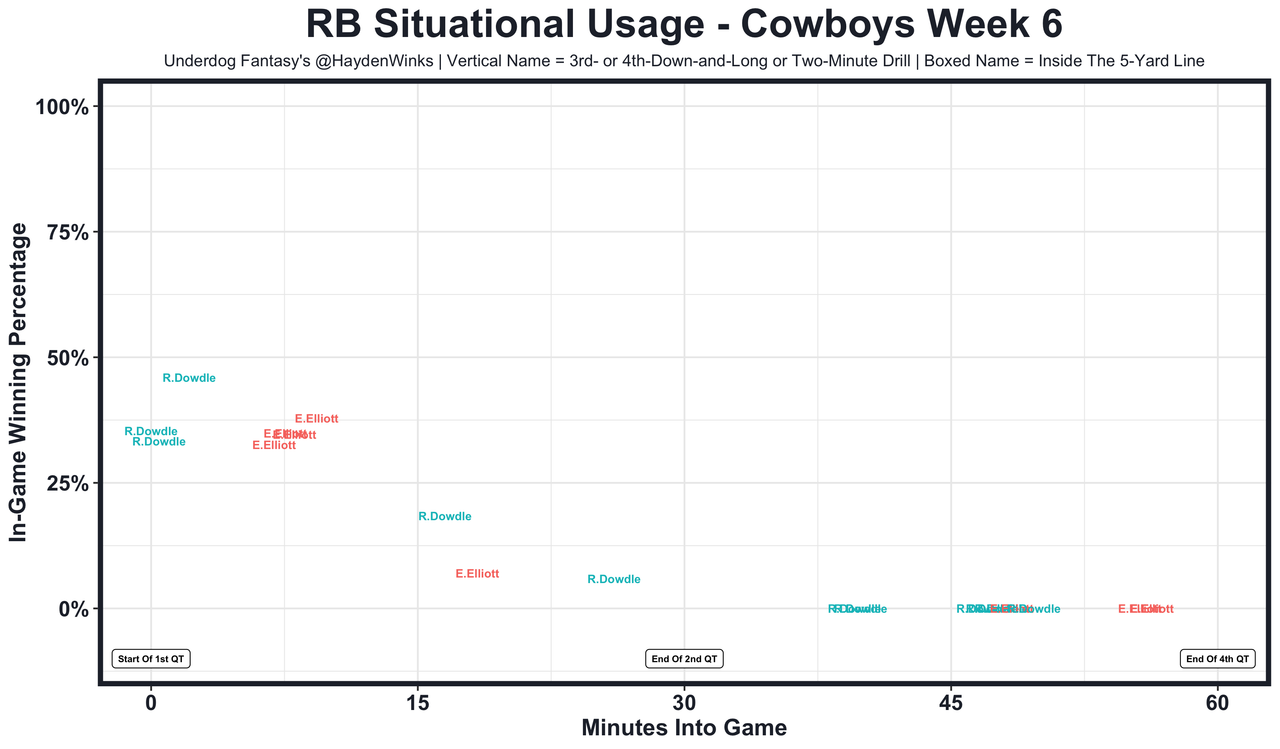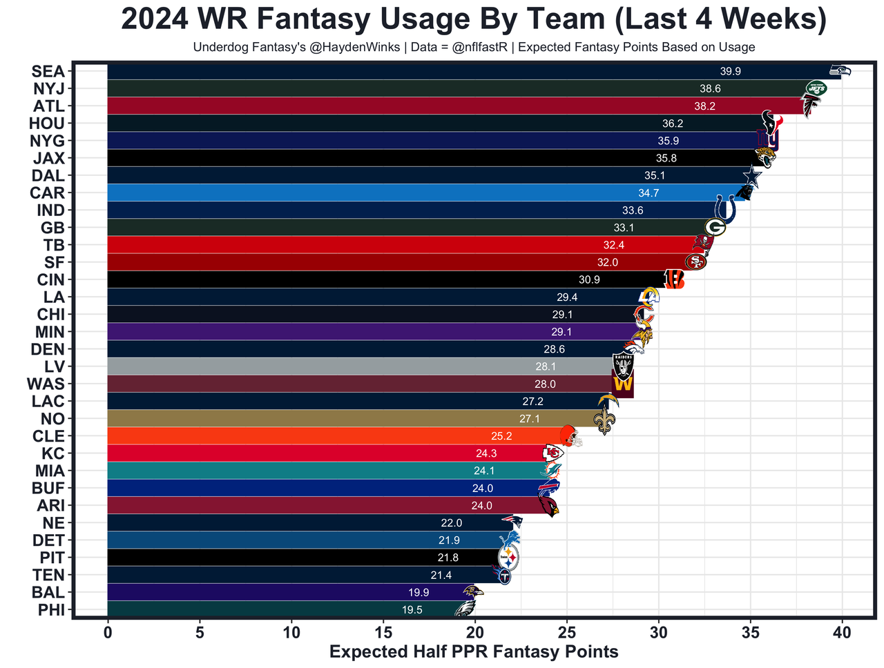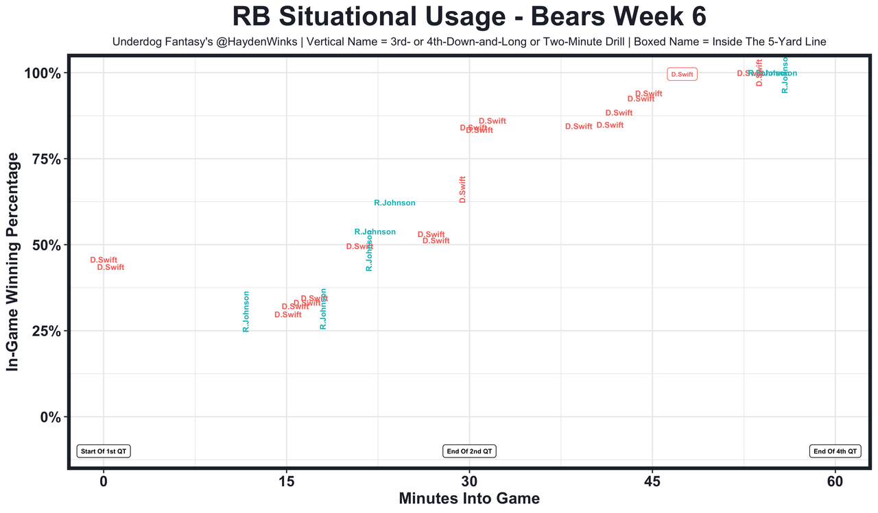 Posted every Tuesday, The Fantasy Usage Model combines my expected fantasy points model with his film notes to recap the previous week's game. An explanation of this is here, but it basically turns targets, carries, air yards, goal line touches, and other variables into expected fantasy points. We have the sickest fantasy show ever on Tuesday nights going over this column. If you have time for 1 hour of fantasy content, make it this one.