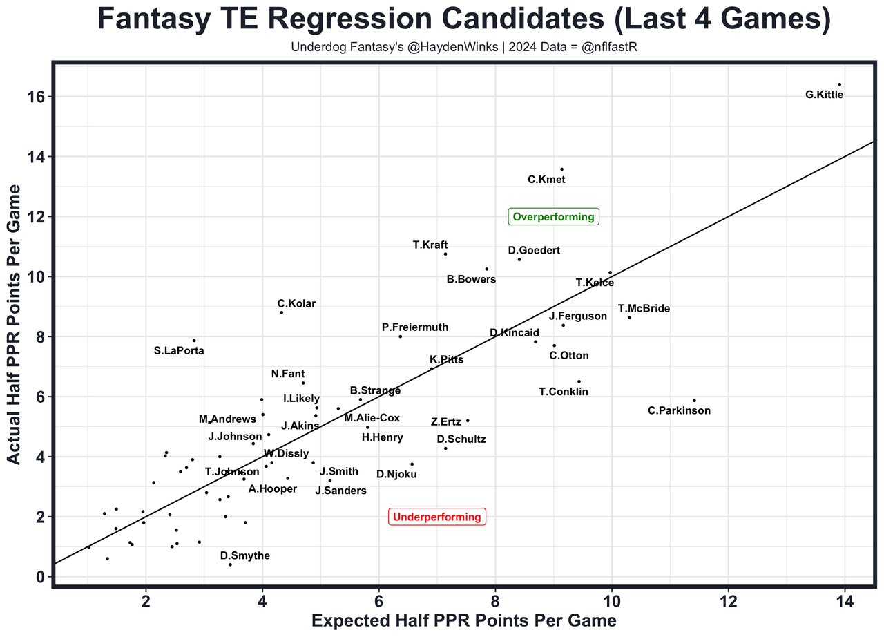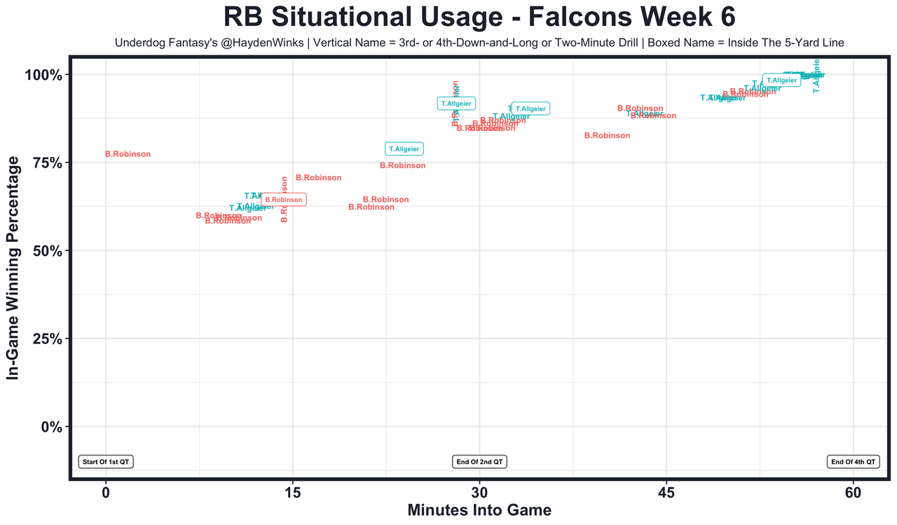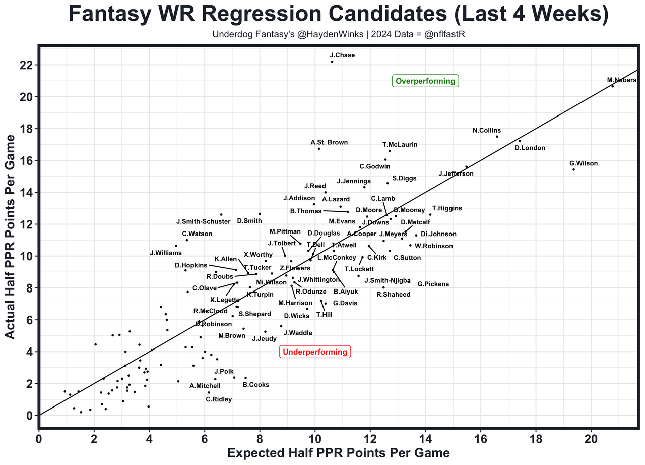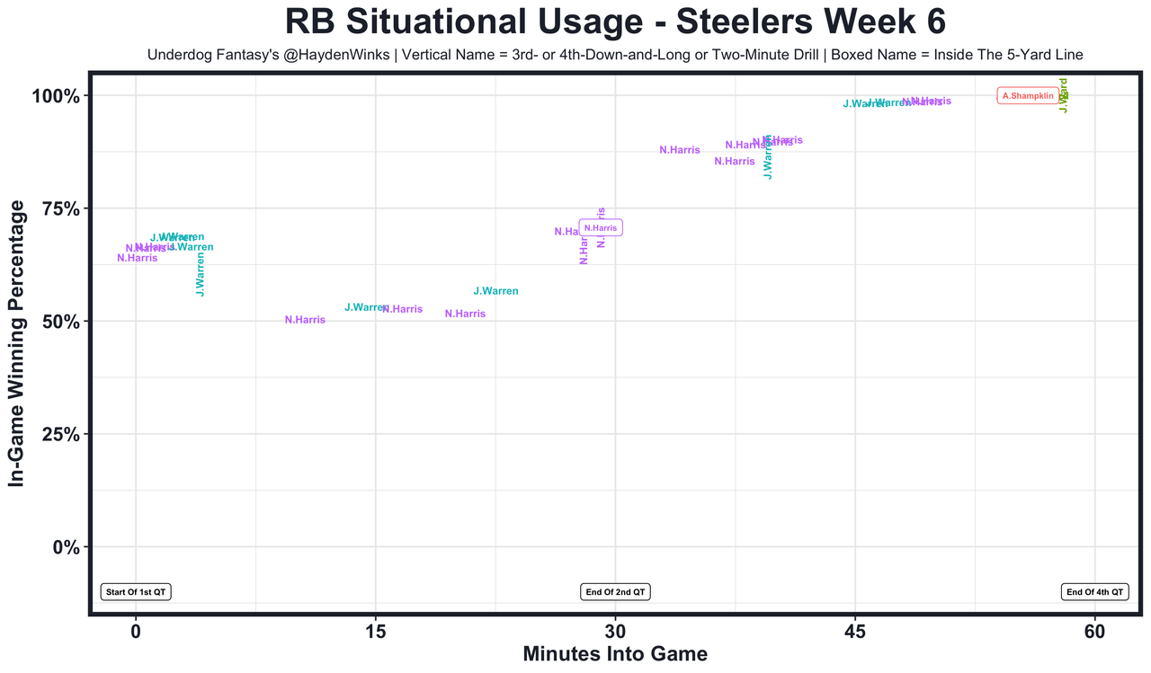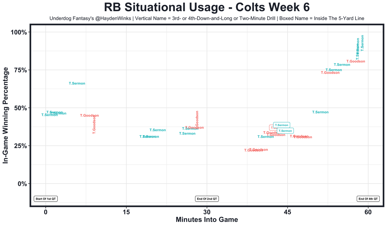 Posted every Tuesday, The Fantasy Usage Model combines my expected fantasy points model with his film notes to recap the previous week's game. An explanation of this is here, but it basically turns targets, carries, air yards, goal line touches, and other variables into expected fantasy points. We have the sickest fantasy show ever on Tuesday nights going over this column. If you have time for 1 hour of fantasy content, make it this one.