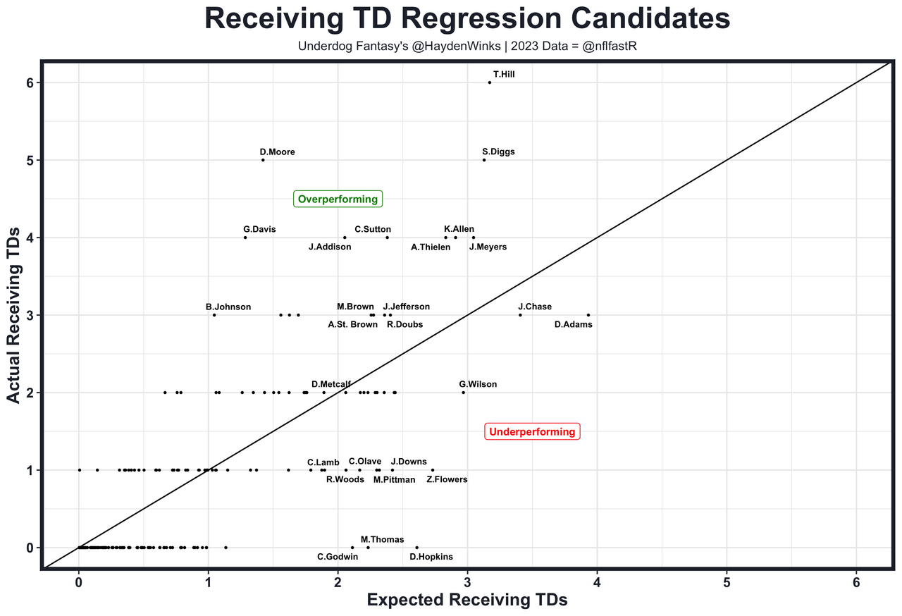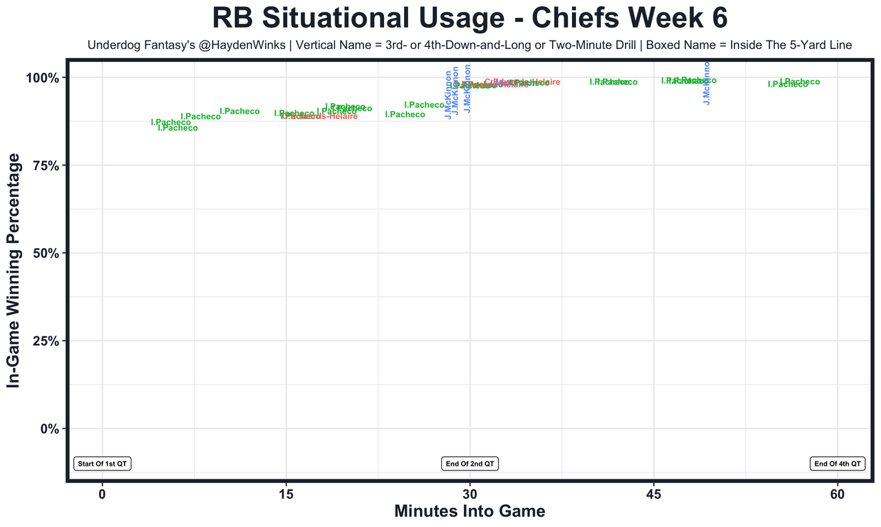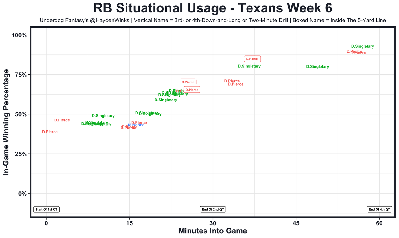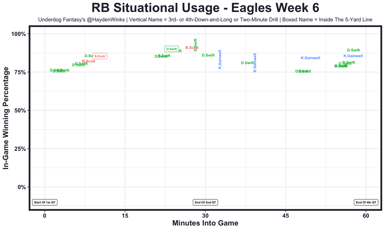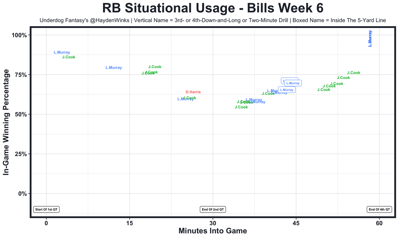 Posted every Tuesday, The Fantasy Usage Model combines my expected fantasy points model with his film notes to recap the previous week's game. An explanation of this is here, but it basically turns targets, carries, air yards, goal line touches, and other variables into expected fantasy points. We have the sickest fantasy show ever on Tuesday nights going over this column. If you have time for 1 hour of fantasy content, make it this one.