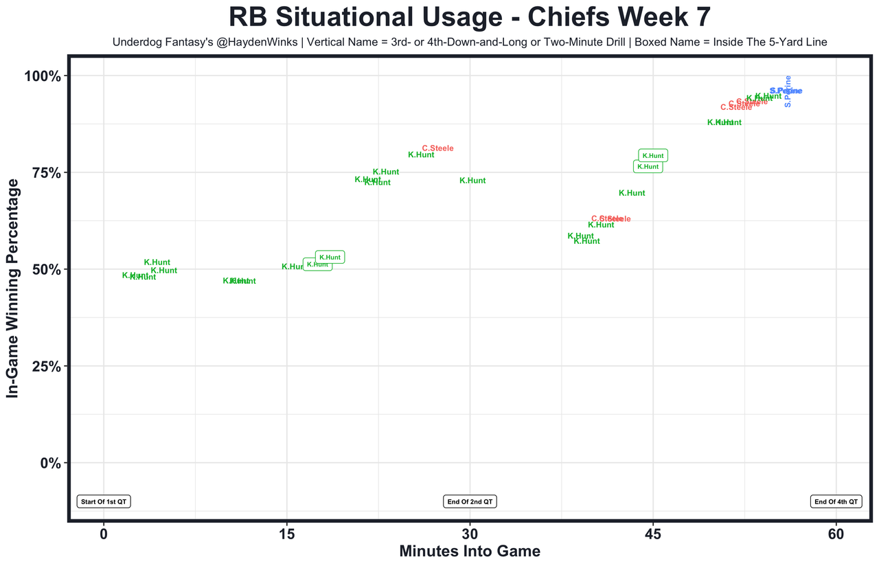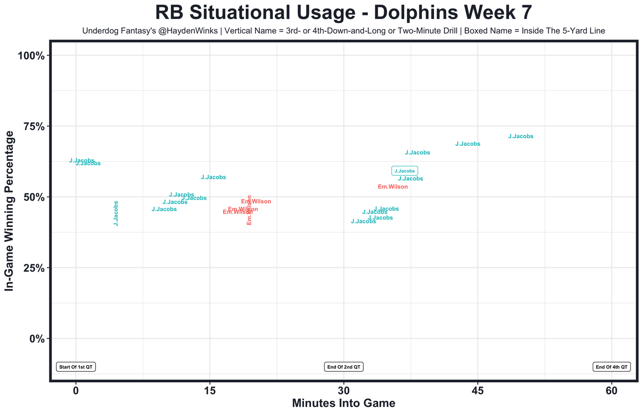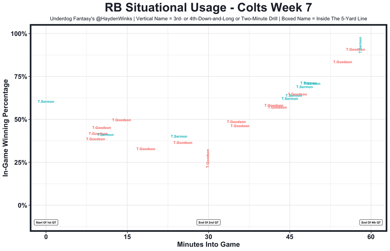 Posted every Tuesday, The Fantasy Usage Model combines my expected fantasy points model with his film notes to recap the previous week's game. An explanation of this is here, but it basically turns targets, carries, air yards, goal line touches, and other variables into expected fantasy points. We have the sickest fantasy show ever on Tuesday nights going over this column. If you have time for 1 hour of fantasy content, make it this one.