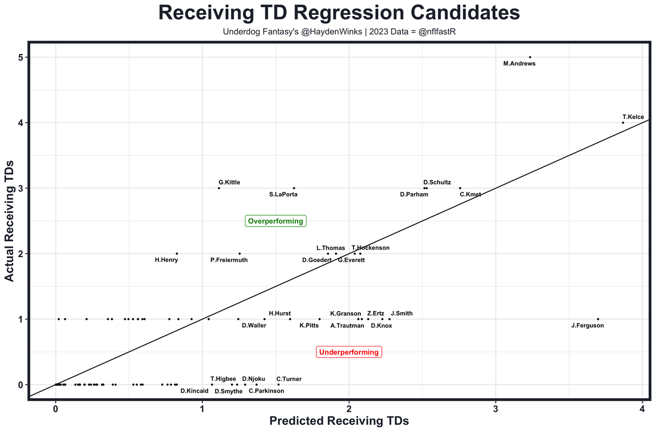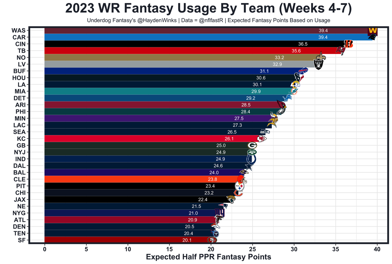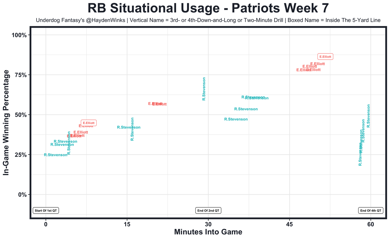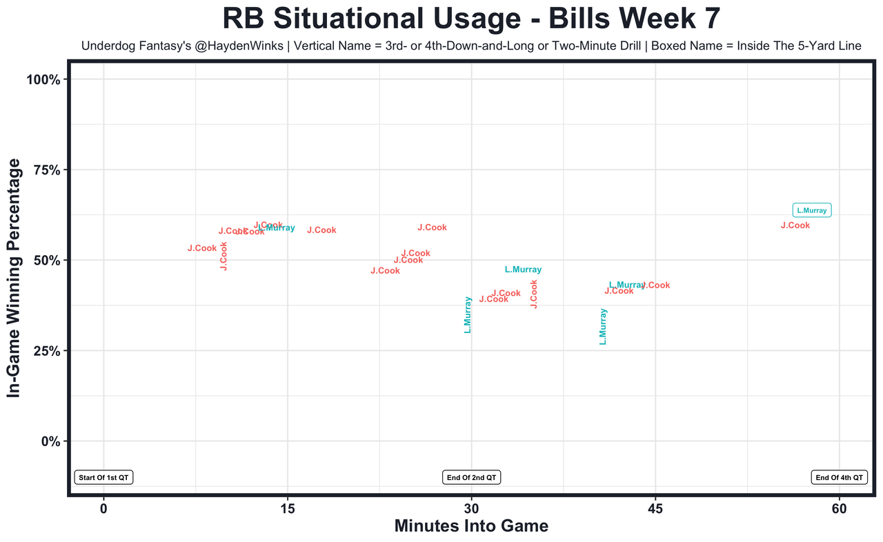 Posted every Tuesday, The Fantasy Usage Model combines my expected fantasy points model with his film notes to recap the previous week's game. An explanation of this is here, but it basically turns targets, carries, air yards, goal line touches, and other variables into expected fantasy points. We have the sickest fantasy show ever on Tuesday nights going over this column. If you have time for 1 hour of fantasy content, make it this one.