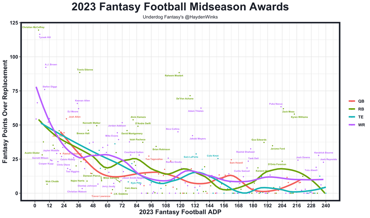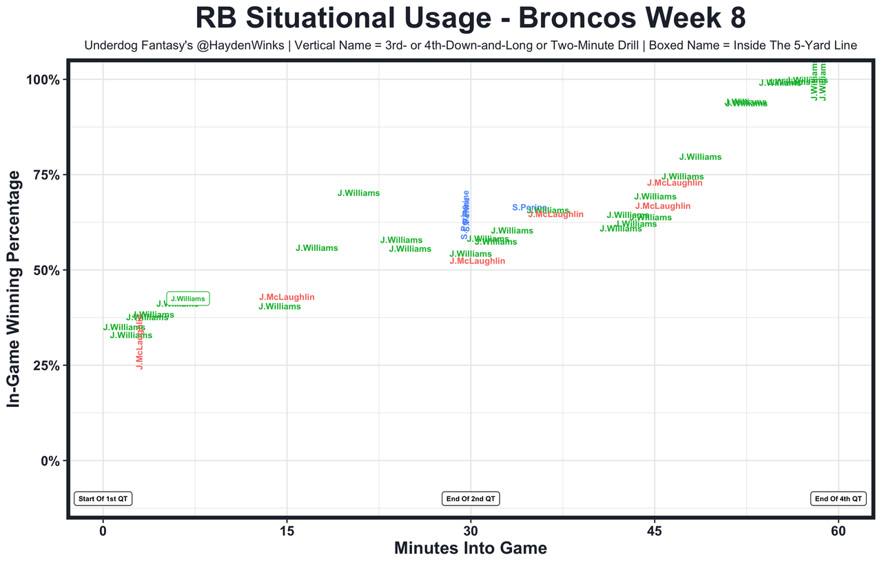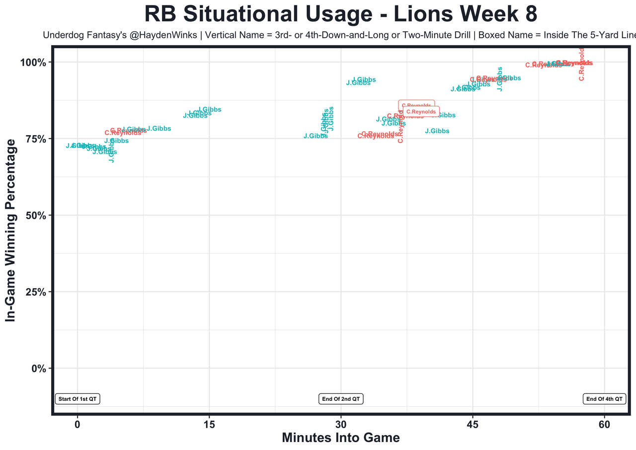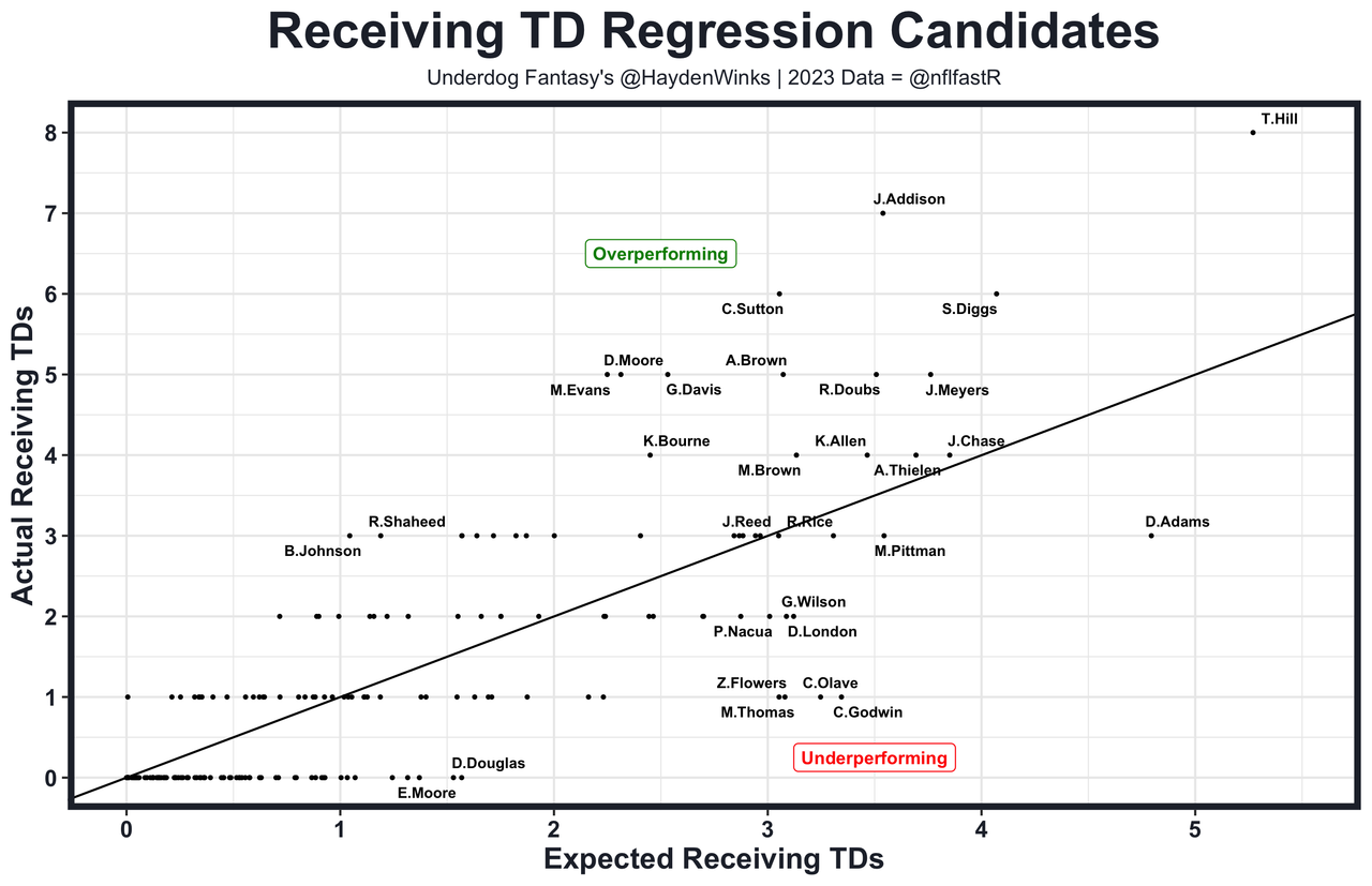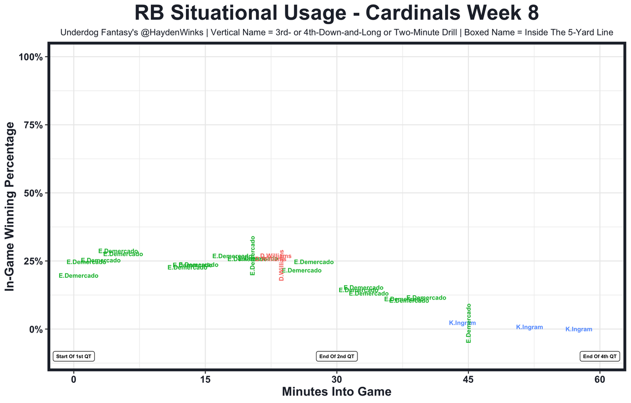 Posted every Tuesday, The Fantasy Usage Model combines my expected fantasy points model with his film notes to recap the previous week's game. An explanation of this is here, but it basically turns targets, carries, air yards, goal line touches, and other variables into expected fantasy points. We have the sickest fantasy show ever on Tuesday nights going over this column. If you have time for 1 hour of fantasy content, make it this one.