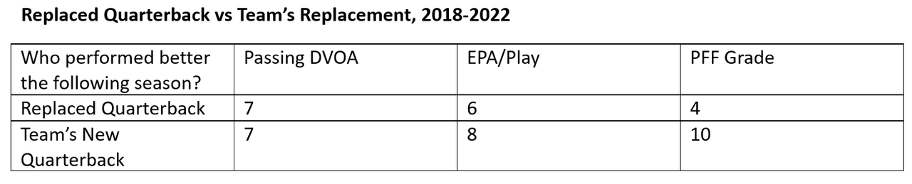 Replaced Quarterback vs Team’s Replacement, 2018-2022