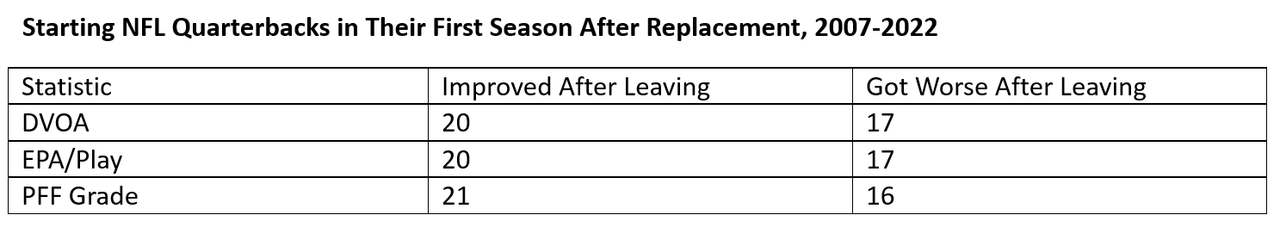 Replaced Quarterback vs Team’s Replacement, 2007-2022
