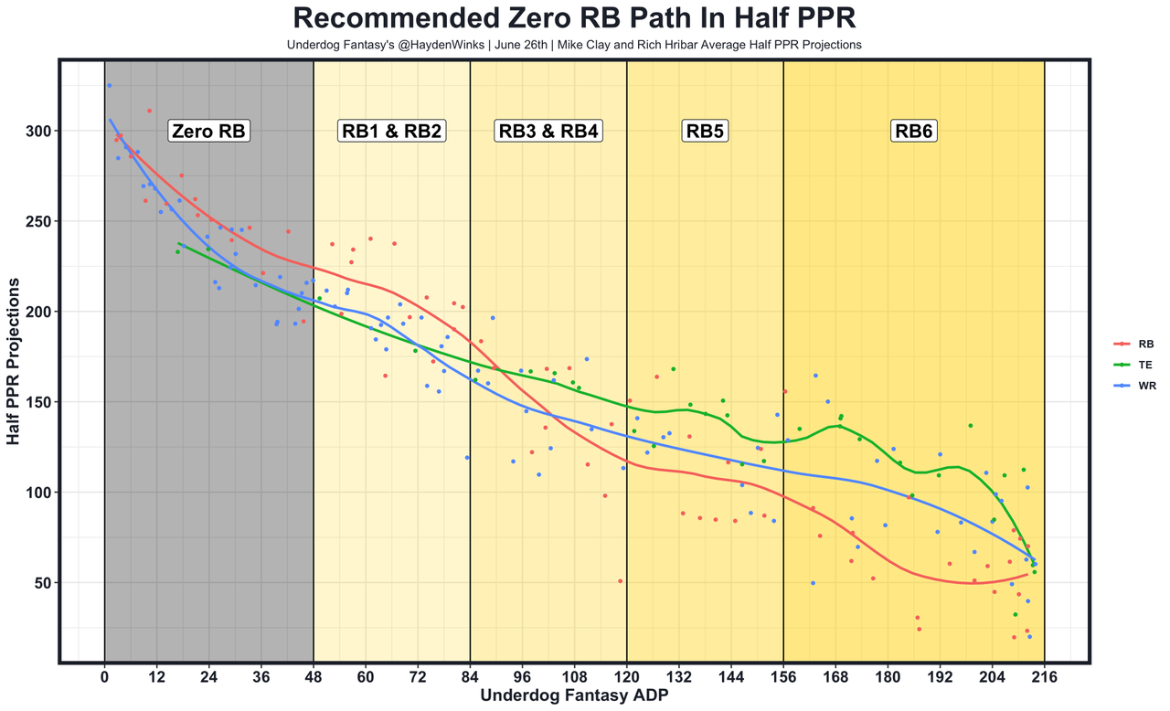 But pre-season projections aren't everything and sometimes the best players available aren't RBs in our particular draft room, so let's dig into the data on how to properly build a Zero RB team anyway.