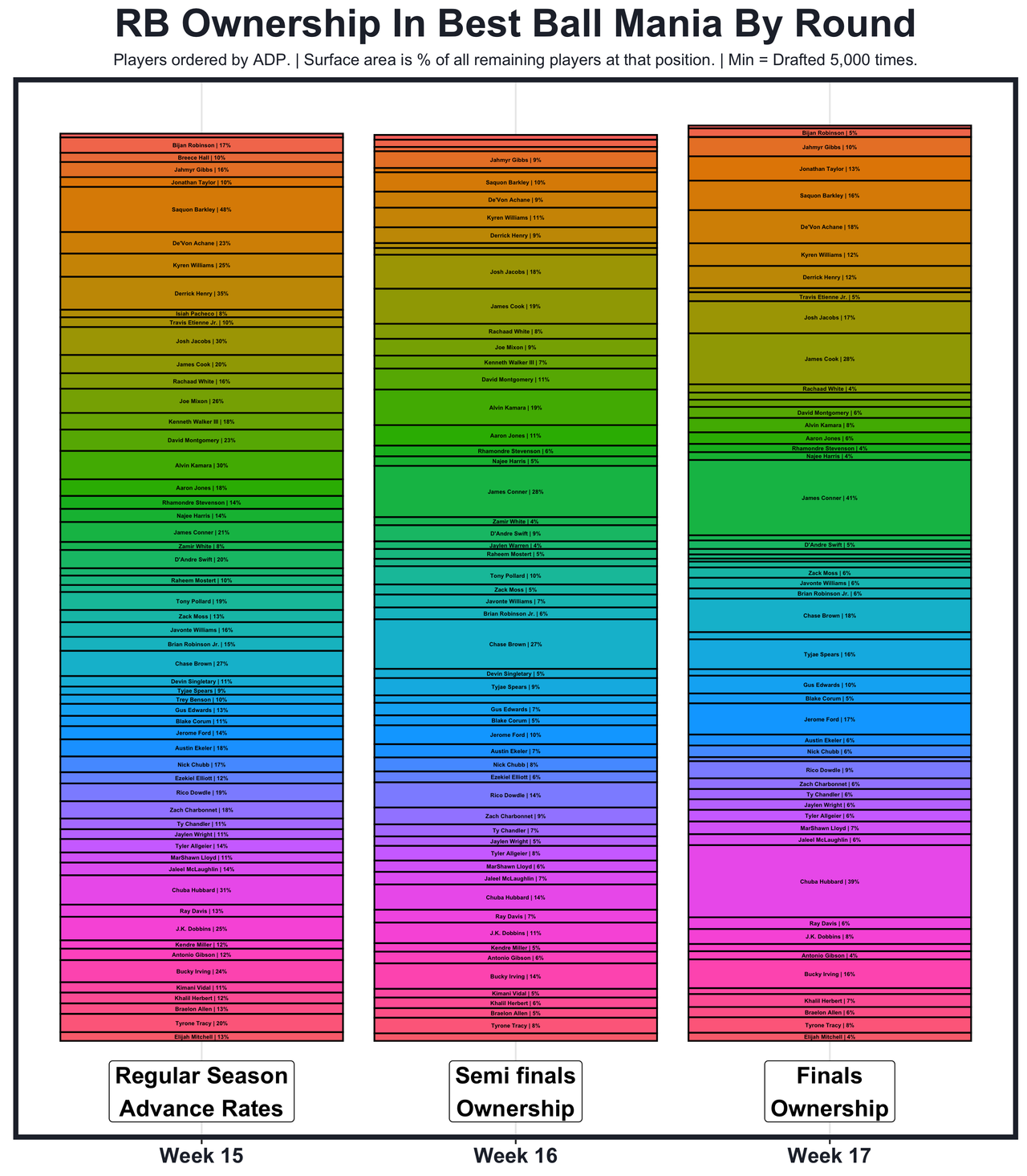 We at Underdog Fantasy release our pick-by-pick data to the public just so we can learn about the fantasy football industry every offseason. For me (Hayden Winks), that's another excuse to come up with some ridiculous charts to complete today's objective: Create a 2024 fantasy football recap by finding out who were the best picks in all 18 rounds of drafts, and why they came up so clutch for fantasy football champions.