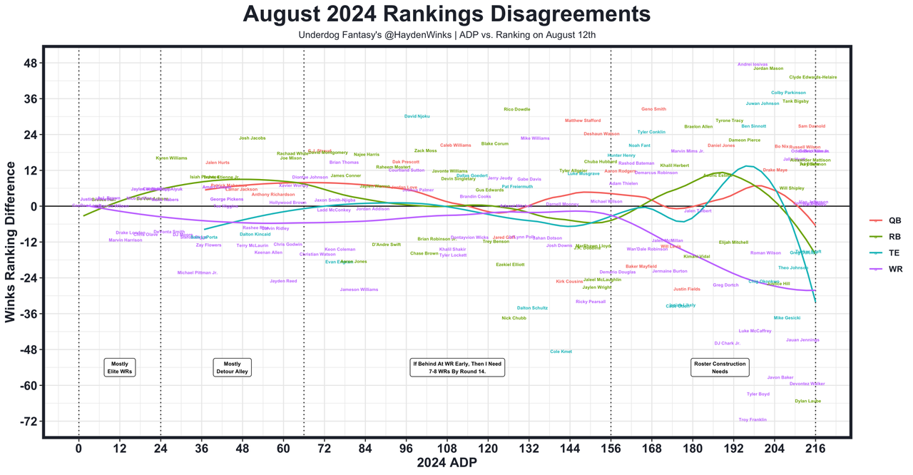 August is fantasy football szn. We've posted 42 videos on our YouTube Channel since the NFL Draft has ended, and I've written 24 columns right here on Underdog Network. But sometimes we just want the answers to the test, which is why I'll be updating these August 2024 fantasy football rankings as often as I can. If you want more breakdowns, I'd recommend these videos and columns:
