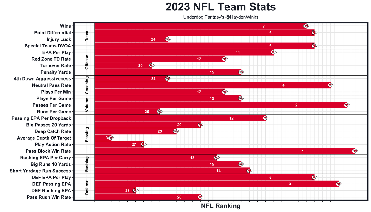 Jordan Love - From Week 12 through the NFL Playoffs, Love was 1st in EPA per play, 2nd in success rate, 2nd in PFF grade, 1st in completion percentage over expected, 1st in pressure to sack rate, and 4th in big time throw rate. The OL looks better on paper heading into the season, and the inexperienced pass-catcher group should be better suited early in the year.