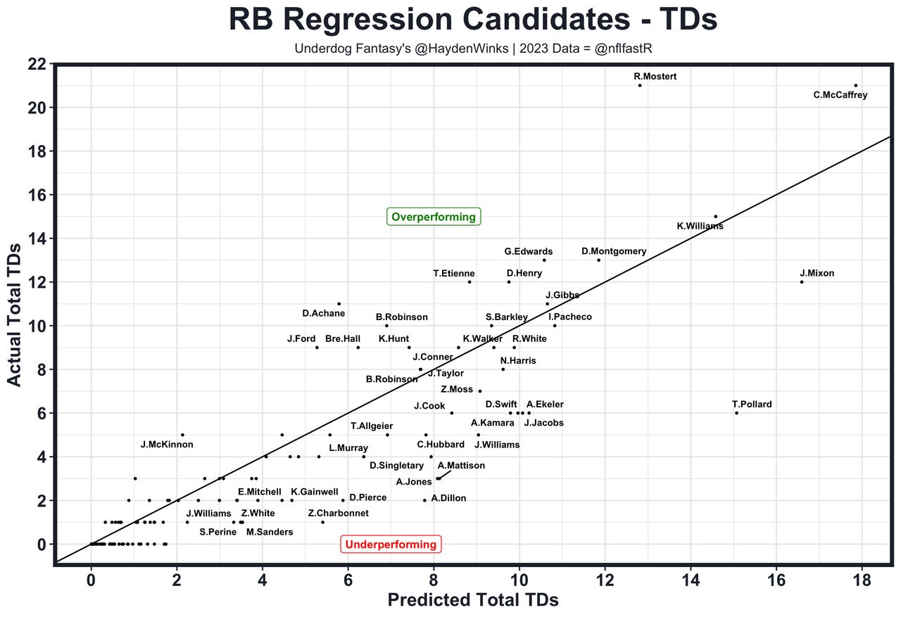 49. RB13 Rachaad White - He's at 850 rushing yards and 5.5 rushing TDs in the Underdog Pick'em Lobby.