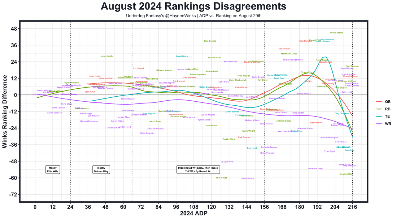 August is fantasy football szn. We've posted 42 videos on our YouTube Channel since the NFL Draft has ended, and I've written 24 columns right here on Underdog Network. But sometimes we just want the answers to the test, which is why I'll be updating these August 2024 fantasy football rankings as often as I can. If you want more breakdowns, I'd recommend these videos and columns: