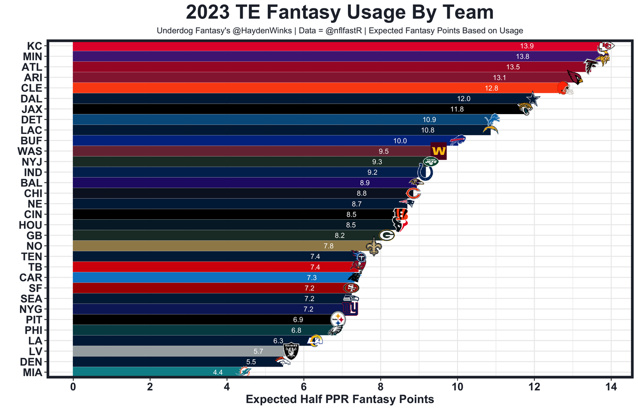 140. TE13 Pat Freiermuth - There's just nobody to throw the ball to in Pittsburgh behind George Pickens. Freiermuth has the ability to be a top-10 receiving TE on his own, too. He's an athletic former 2nd-round who peaked at a 1.7 yards per route average in 2022. He's now entering the prime of his career in a TE-friendly offense. New OC Arthur Smith will dial up first-read targets to his TEs (see: rookie Kyle Pitts, career-high Jonnu Smith, career-high Anthony Firkser, etc.), and the Steelers' TE2 Darnell Washington is not far off from being an offensive tackle. There will be pass attempts where it's Pickens, Freiermuth, and a really mid No. 2 WR will be the only options.