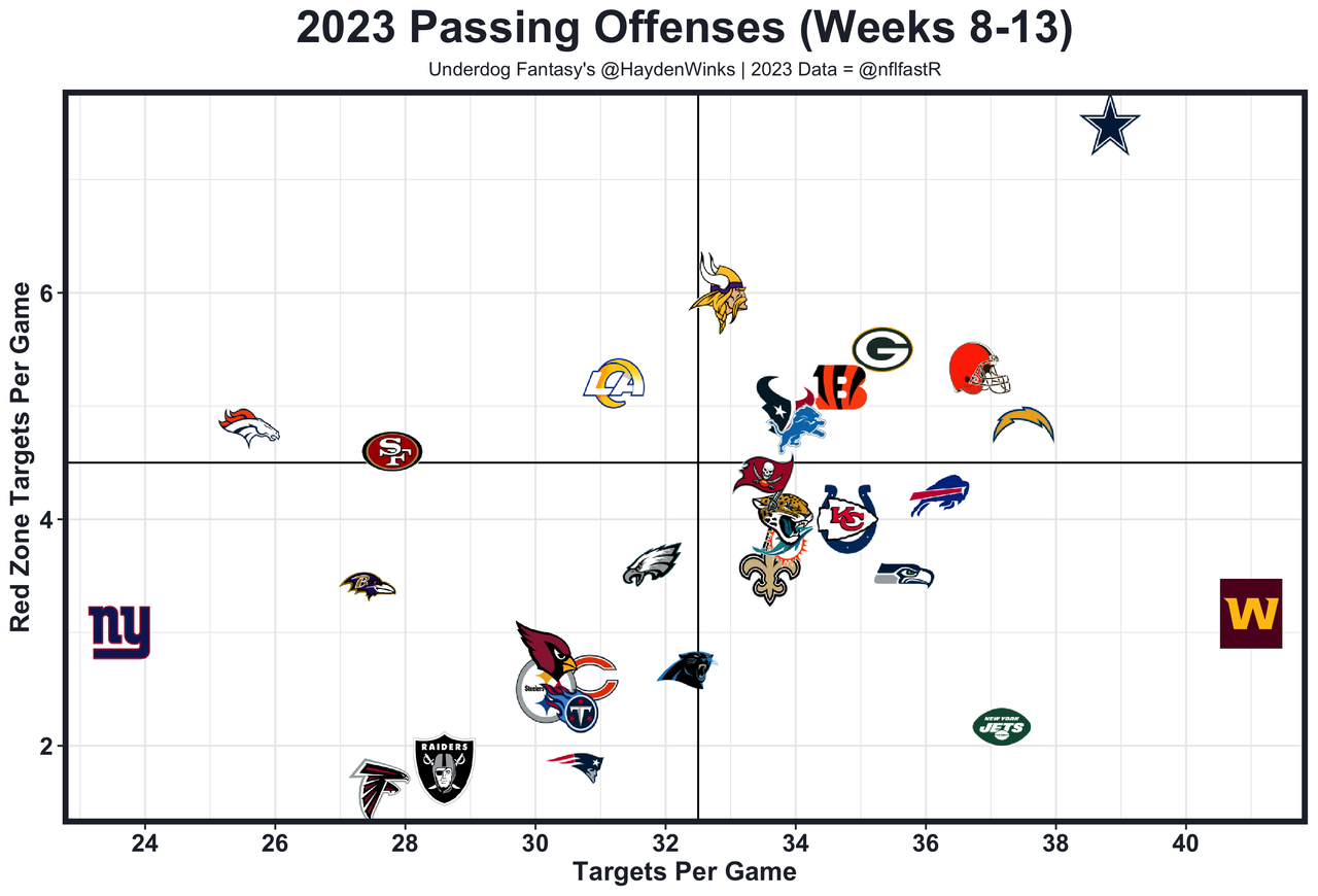 Nico Collins - This month, Collins is the WR5 on WR6 usage, while Tank Dell was the WR7 on WR4 usage before his season-ending injury. Stroud is capable of winning difficult matchups by throwing vertical at all times. Collins' elite athleticism and size have turned him into a true alpha receiver on tape, but the Jets are the No. 1 fantasy WR defense headlined by CB1 Sauce Gardner. That said, there aren't "shadow corners" in 2023, so Collins will only see him on half of his snaps or so. I'm okay going into battle with Collins as long as Stroud is his QB, especially if Dalton Schultz (hamstring) is out again. Keep an eye out for the weather report here. 70.5 receiving yards in Pick'em.