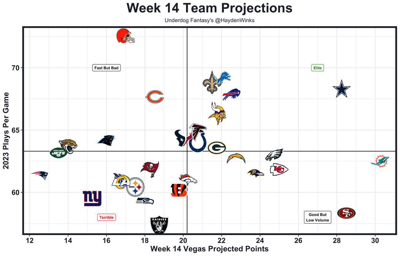 Elijah Moore - This assumes Amari Cooper (concussion) is in. Moore is a chaotic route runner with very inconsistent results, but at least Joe Flacco gives him shots, even downfield. Over the last two weeks, Moore has had 14.3 and 15.8 expected half PPR points with Amari banged up but those were a lot of prayers. He'll battle windy, rainy conditions in Week 14 (more on that later in the week).