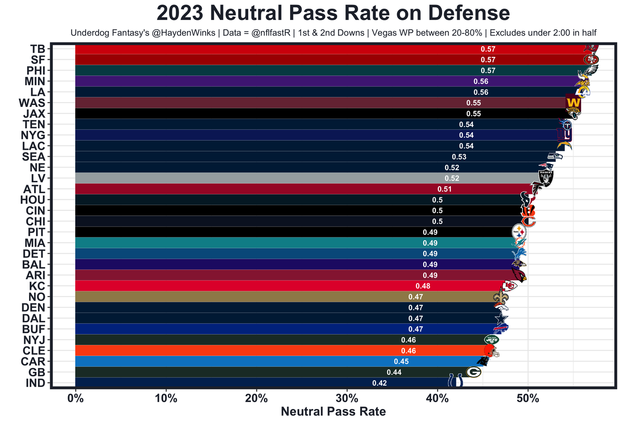 Josh Jacobs - It's been an up-and-down season for Jacobs, who is averaging 13.2 half PPR points on 16.9 expected half PPR points. This month, Jacobs is the RB19 on RB19 usage. Things look mediocre heading into Week 14, with the Vikings ranking 4th-best against fantasy RBs on an abnormally high 56% neutral pass rate allowed (meaning opposing offenses are choosing to pass). We'll see if things look different coming off the Raiders bye. 91.5 rushing yards in Pick'em.