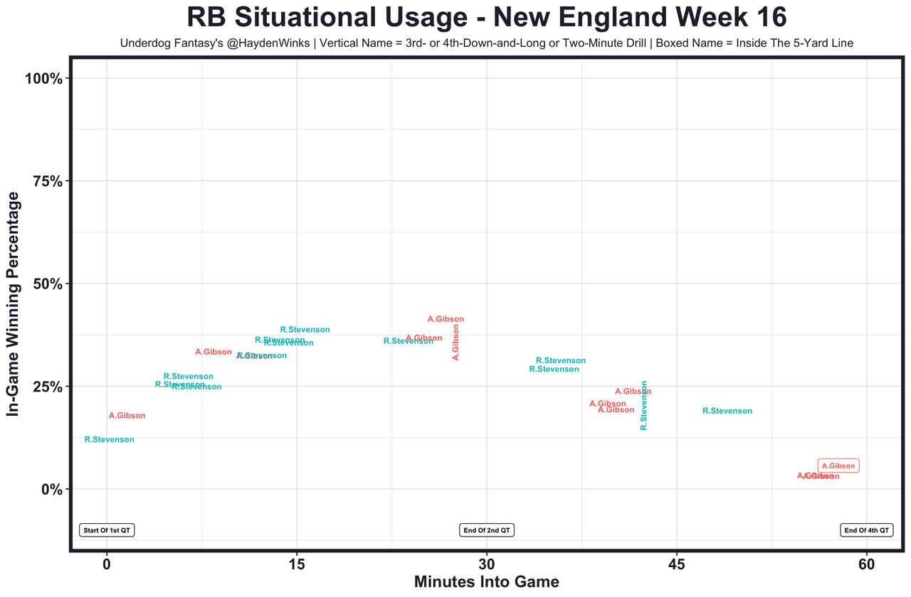 The Patriots project for the 6th-fewest points of the week, and Stevenson has benching risk after Antonio Gibson closed out last week's game following Stevenson's 7th fumble (3rd lost).