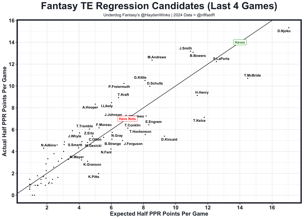 He's the TE10 on TE6 usage this month with Drake Maye battling.