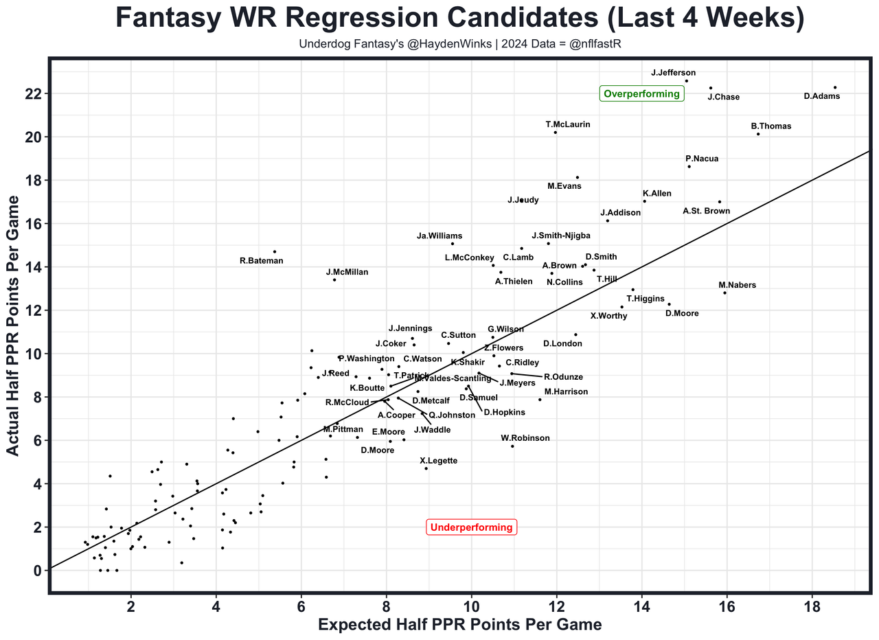 That was a season high in usage (26.4 expected half PPR points) without David Montgomery.