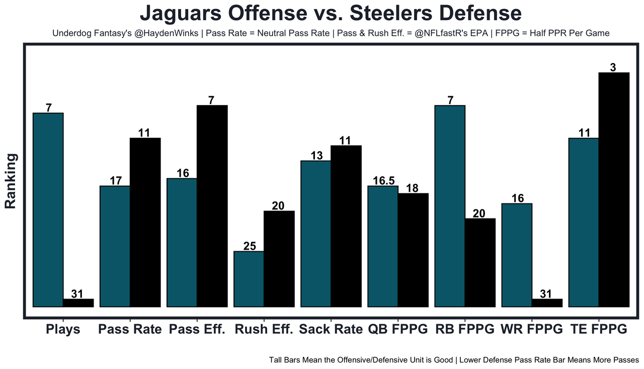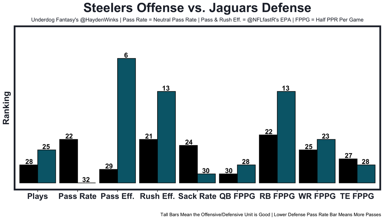 Diontae Johnson - Offenses facing the Jaguars are passing the ball at the highest rate in neutral situations, and their DC said that's intentional. Expect nearly double-digit targets for Johnson, who is off the final injury report.