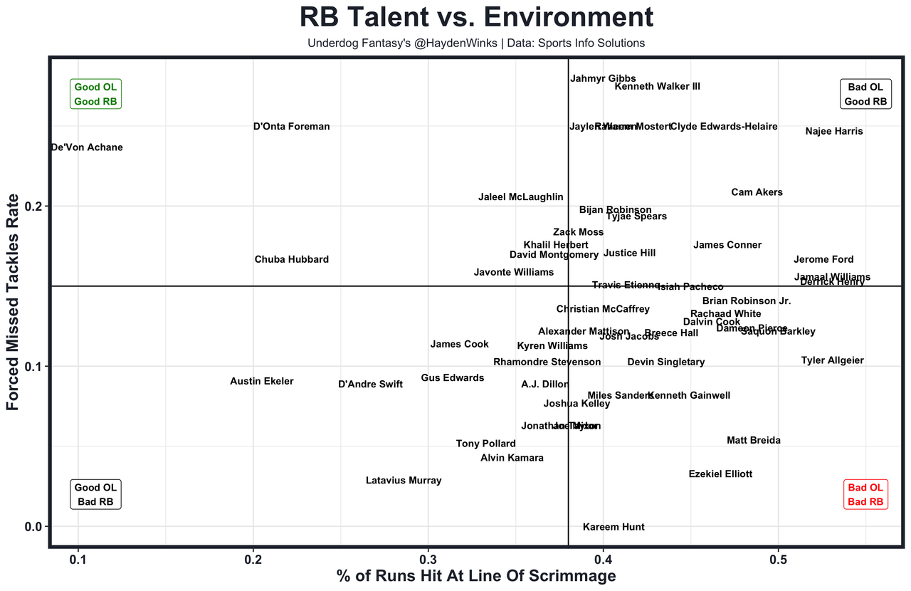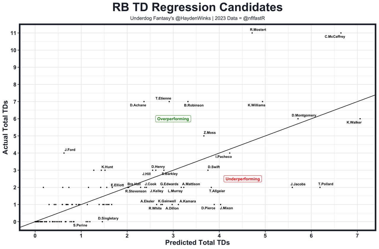D'Onta Foreman - He had 10.8 and 19.2 expected half PPR points in his two starts without Roschon Johnson as a productive early-down rusher behind a suddenly underrated OL. Foreman is thiccccc and should play ahead of Johnson at the goal line at the very least. 55.5 total yards in Pick'em.