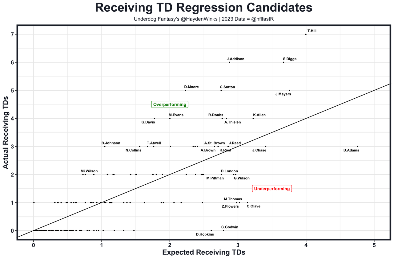 Jauan Jennings - This assumes no Deebo Samuel. He had a season-high 9.4 expected half PPR points last week while moving into a near full-time role.